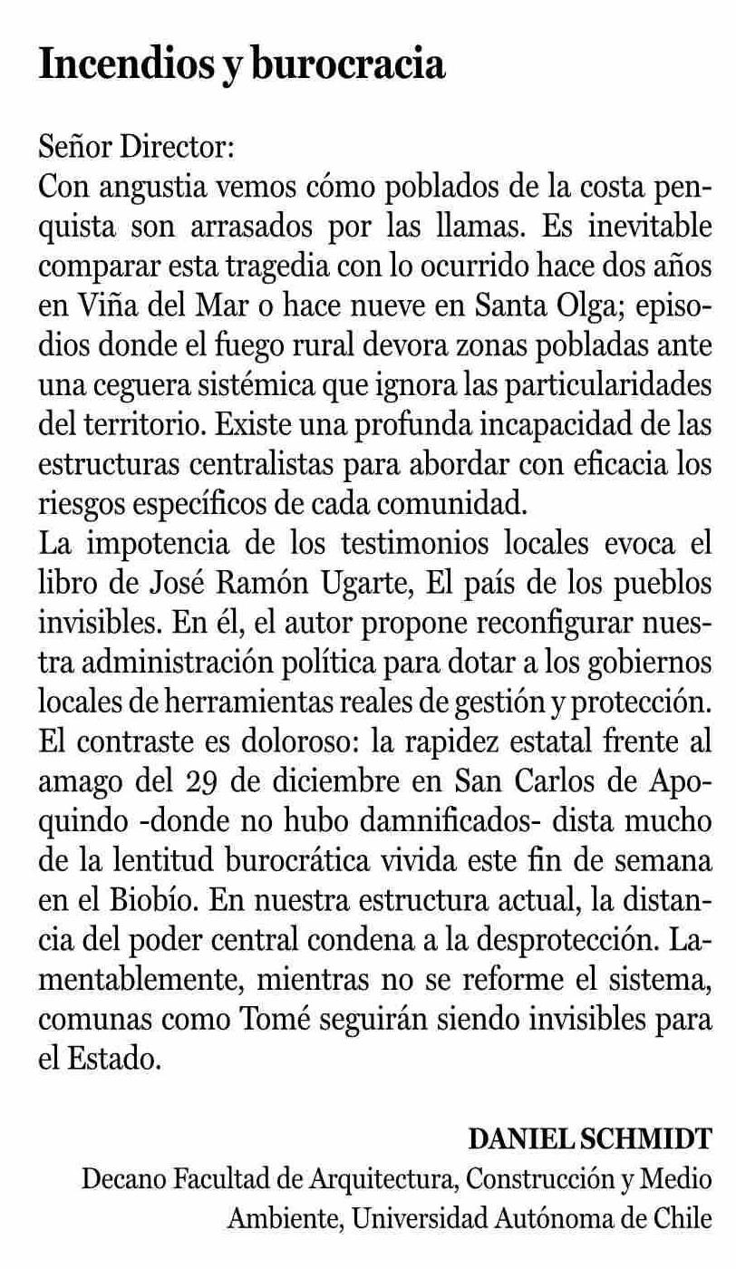 Cartas: Incendios y burocracia 26-01-2026 La Prensa de Curicó |
