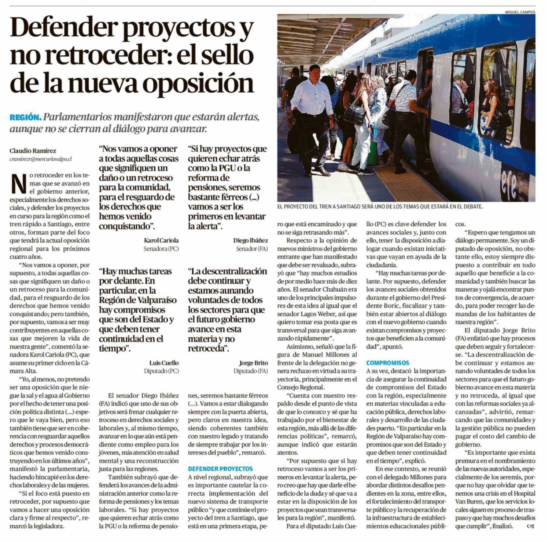 Defender proyectos y no retroceder: el sello de la nueva oposición 15-03-2026 El Mercurio de Valparaíso |