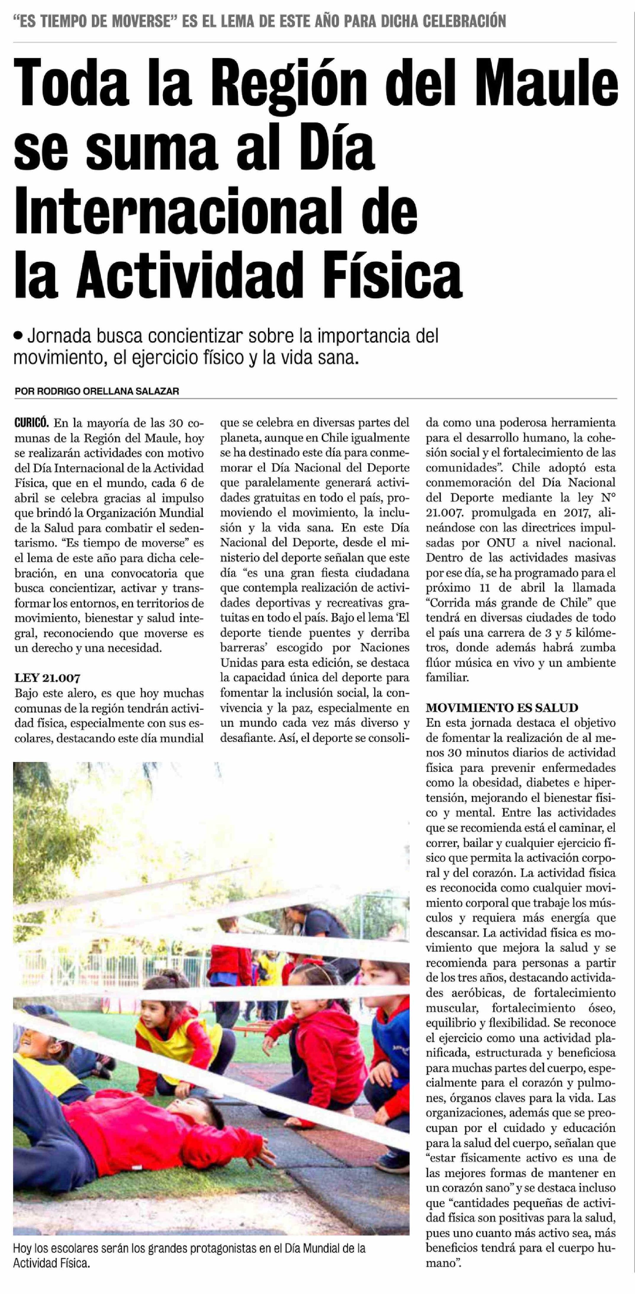 Toda la Región del Maule se suma al Día Internacional de la Actividad Física 06-04-2026 La Prensa de Curicó |