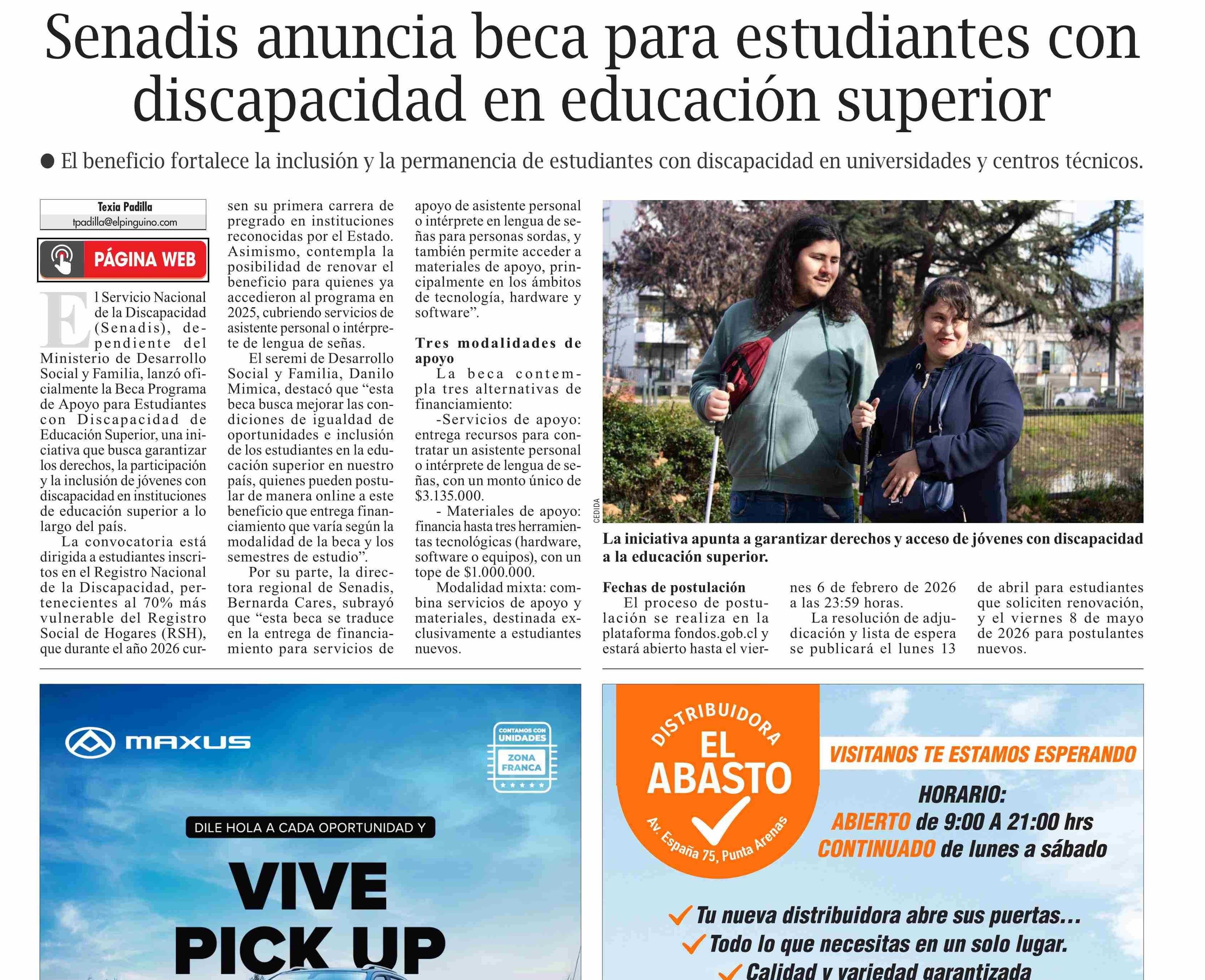 Senadis anuncia beca para estudiantes con disc ap acidad en e duc ación superior 28-01-2026 El Pingüino |