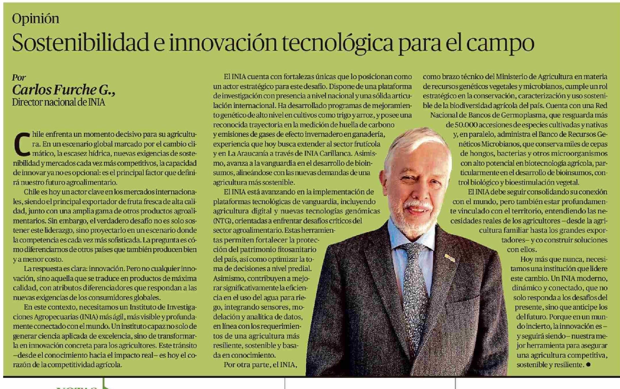 Columnas de Opinión: Sostenibilidad e innovación tecnológica para el campo