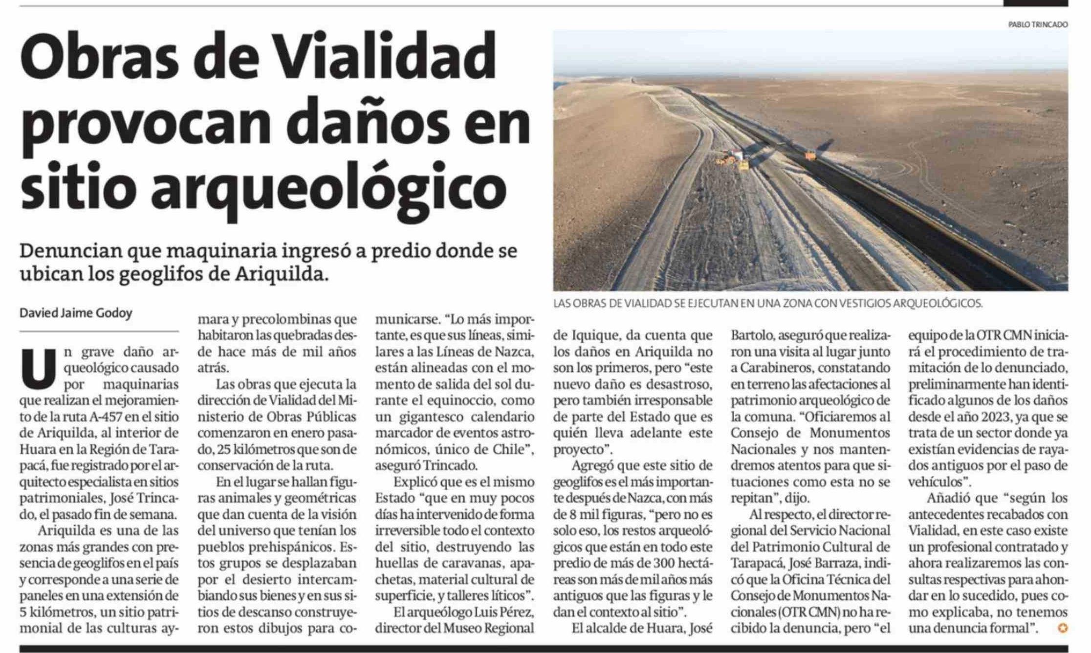 Obras de Vialidad provocan daños en sitio arqueológico 27-03-2026 La Estrella de Iquique |