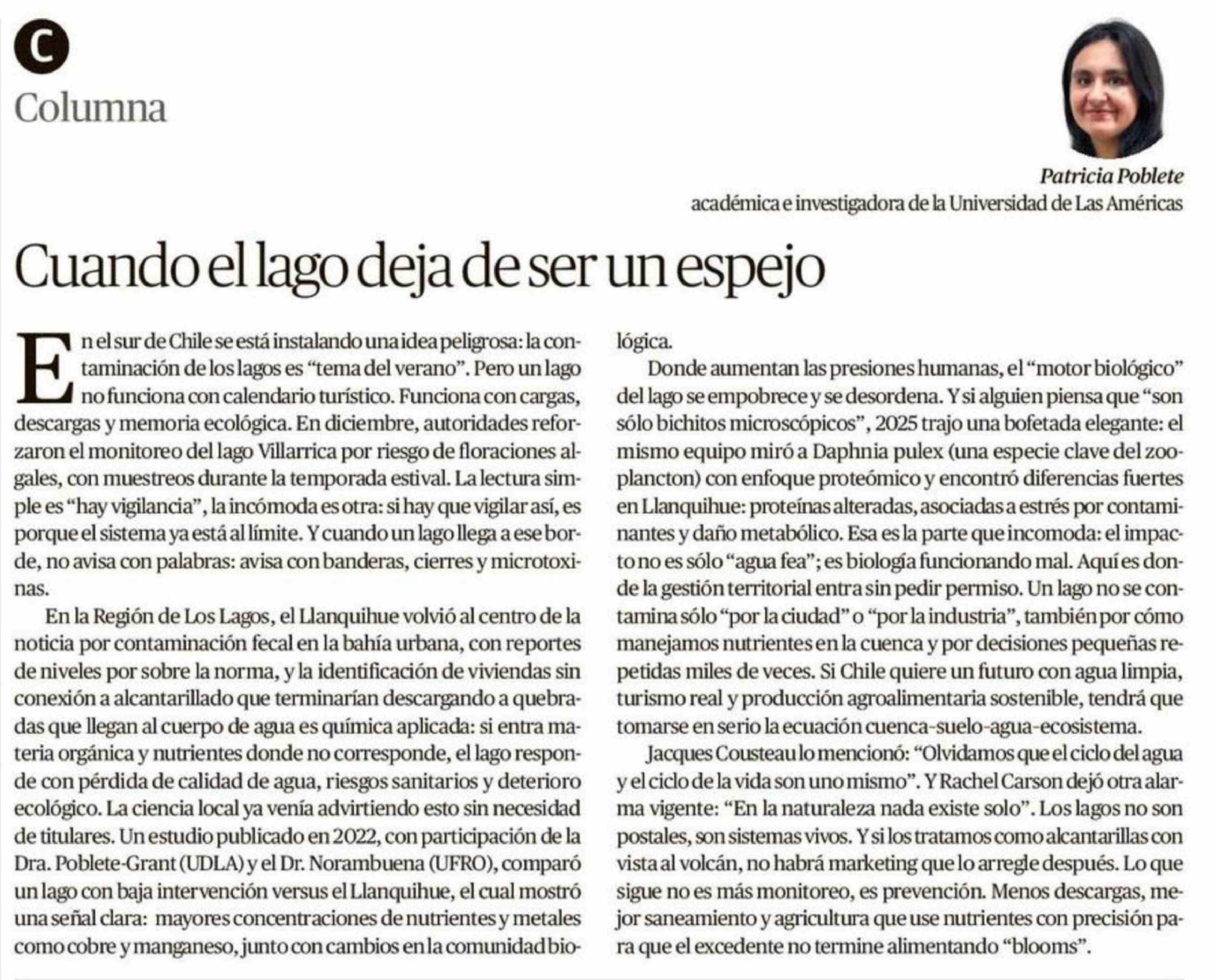Título: Columnas de Opinión: Cuando el lago deja de ser un espejo