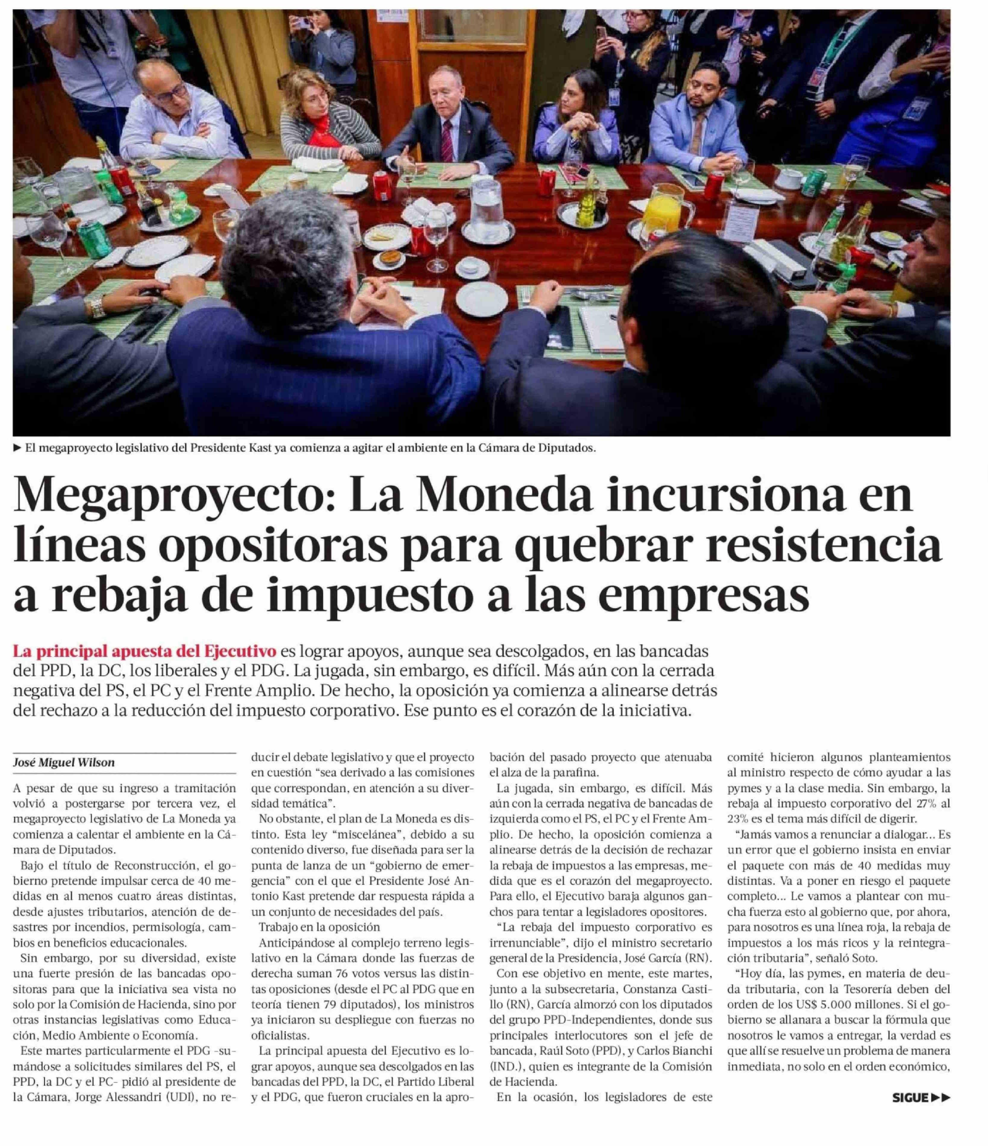 | Título: | Megaproyecto: La Moneda incursiona en líneas opositoras para quebrar resistencia a rebaja de impuesto a las empresas |