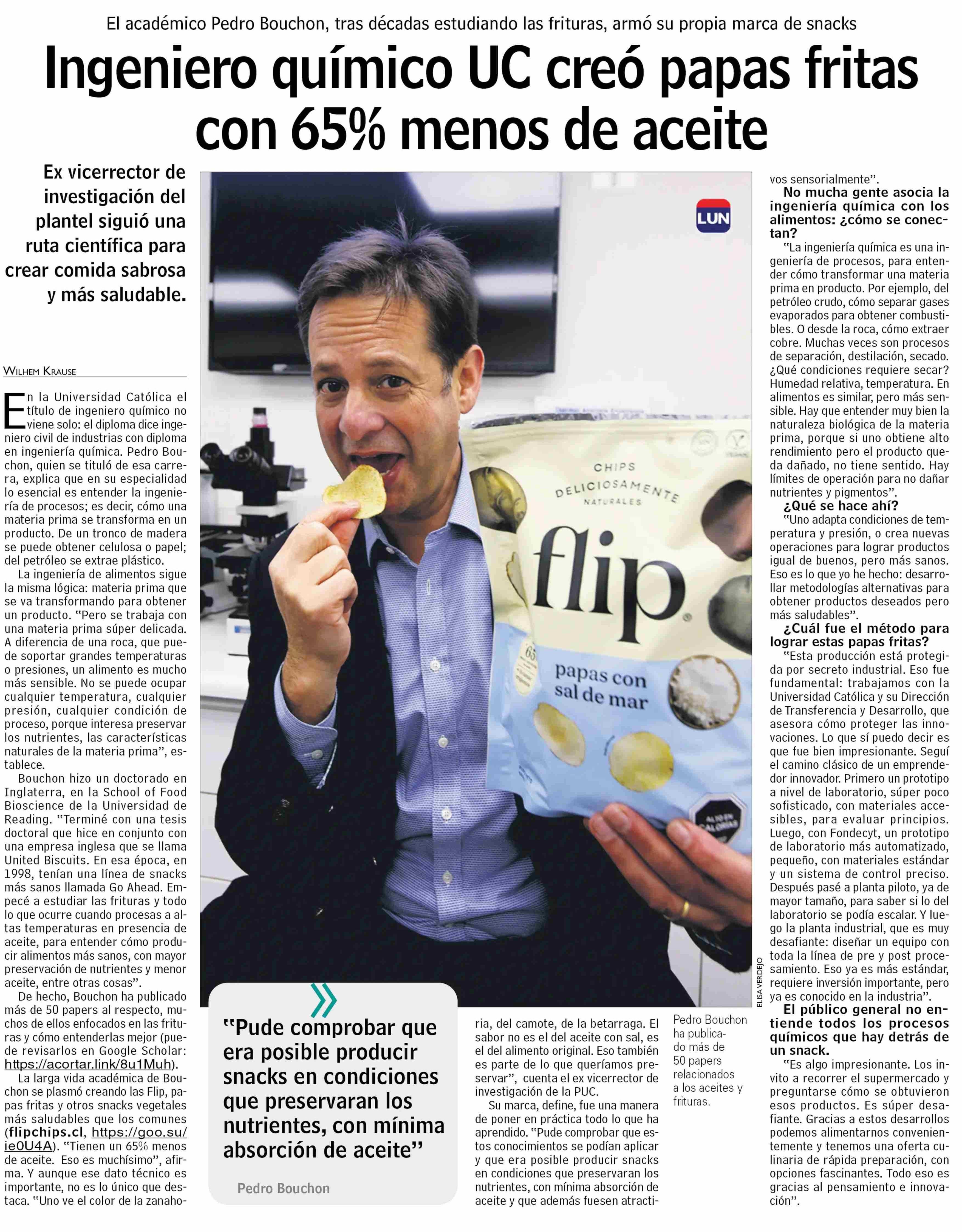 | Título: | Ingeniero químico UC creó papas fritas con 65% menos de aceite |