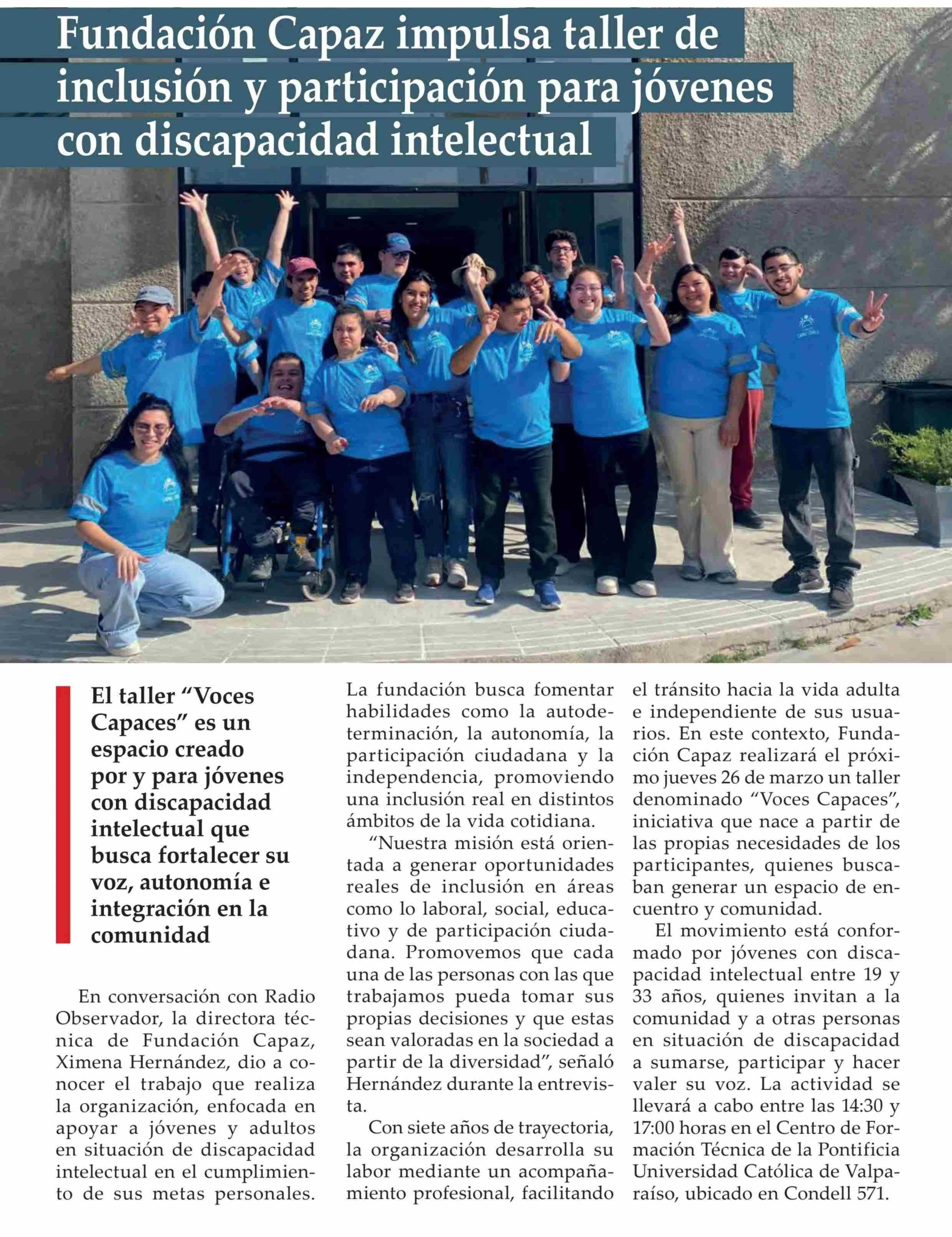 Título: Fundación Capaz impulsa taller de inclusión y participación para jóvenes con discapacidad intelectual