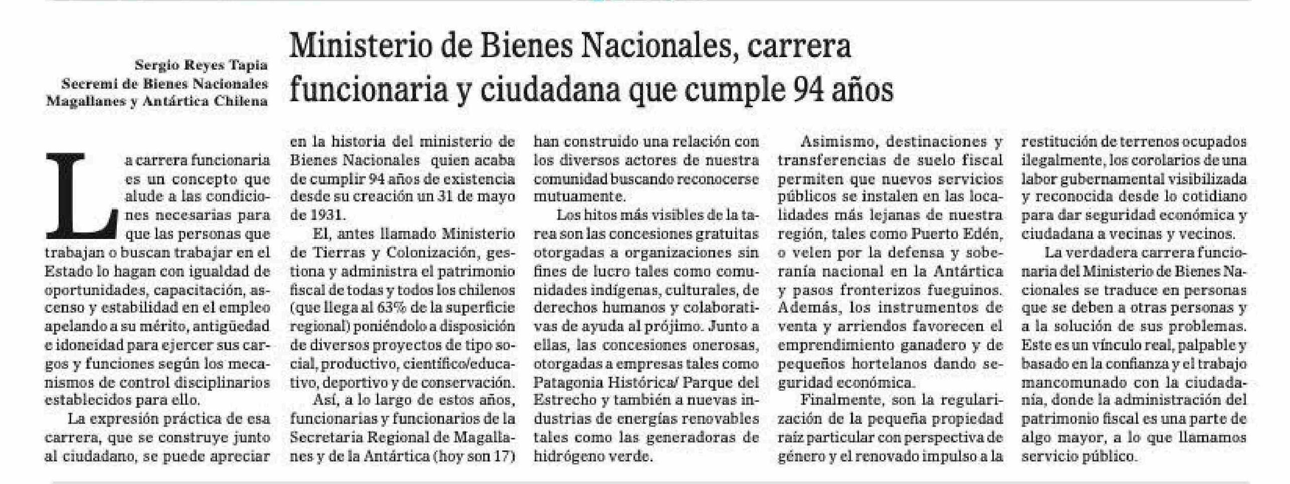 Ministerio de Bienes Nacionales, carrera funcionaria y ciudadana que cumple 94 años 01-06-2025 El Magallanes |