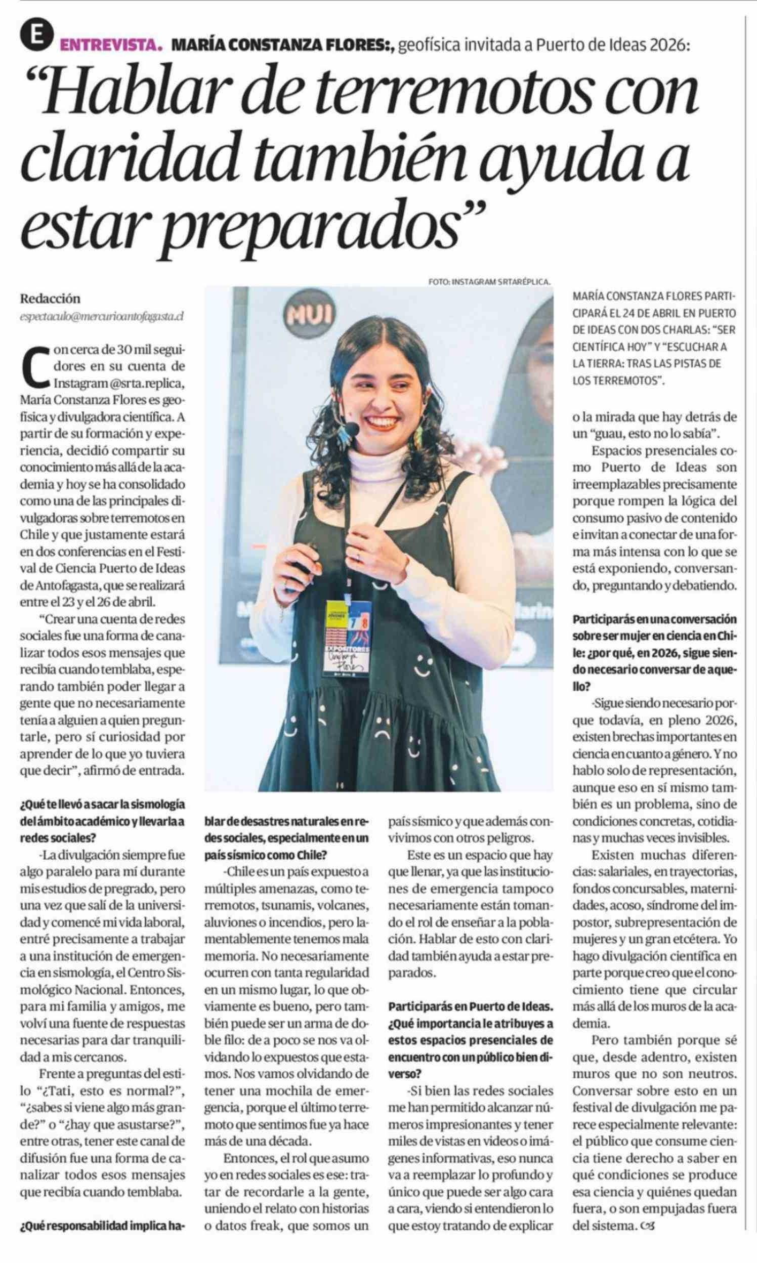 "Hablar de terremotos con claridad también ayuda a estar preparados" 14-04-2026 El Mercurio de Antofagasta |