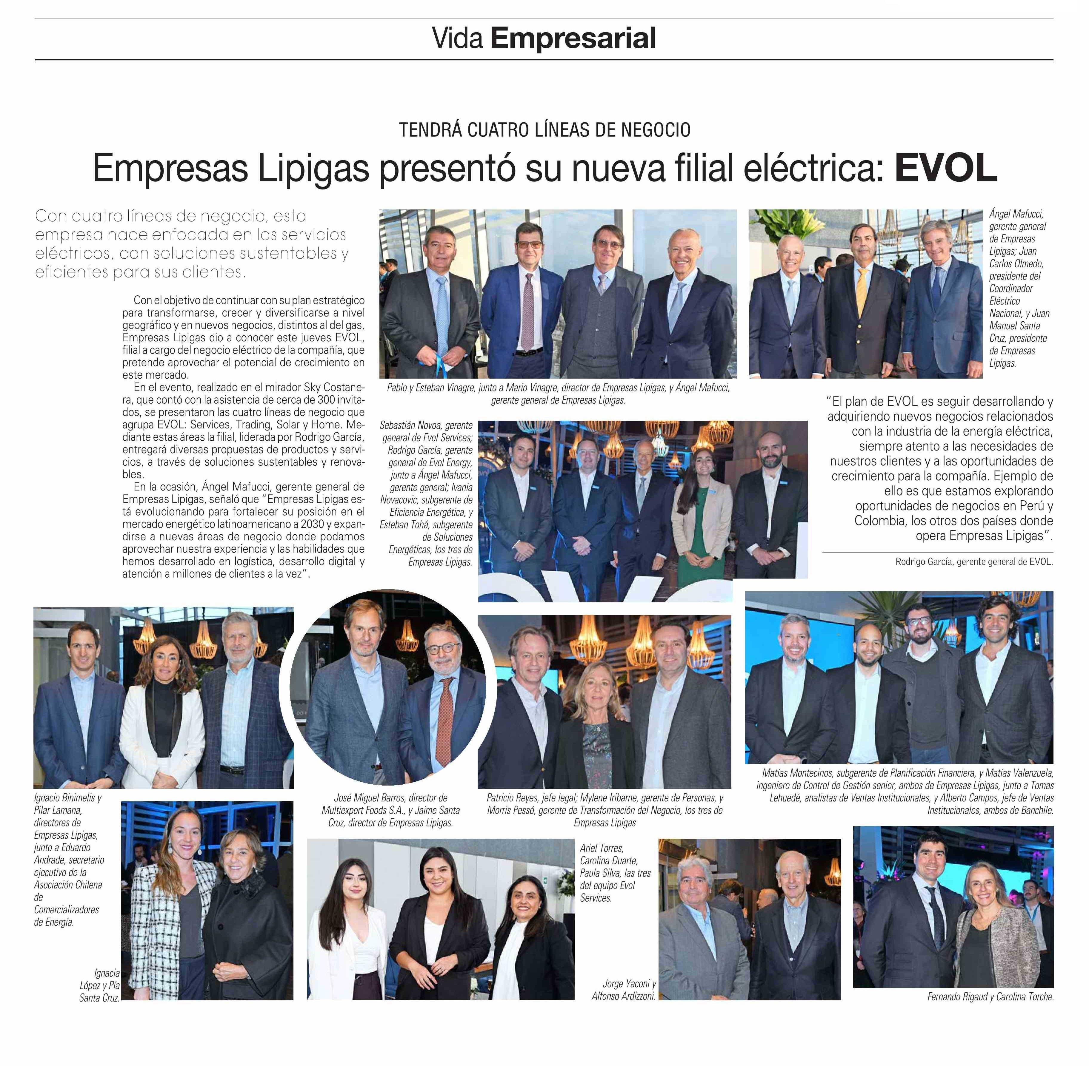 Empresas Lipigas presentó su nueva filial eléctrica: EVOL 07-10-2023 El Mercurio |