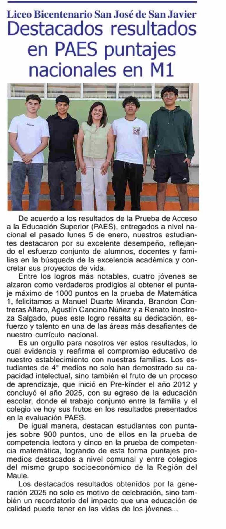 Título: Destacados resultados en PAES puntajes nacionales en Ml