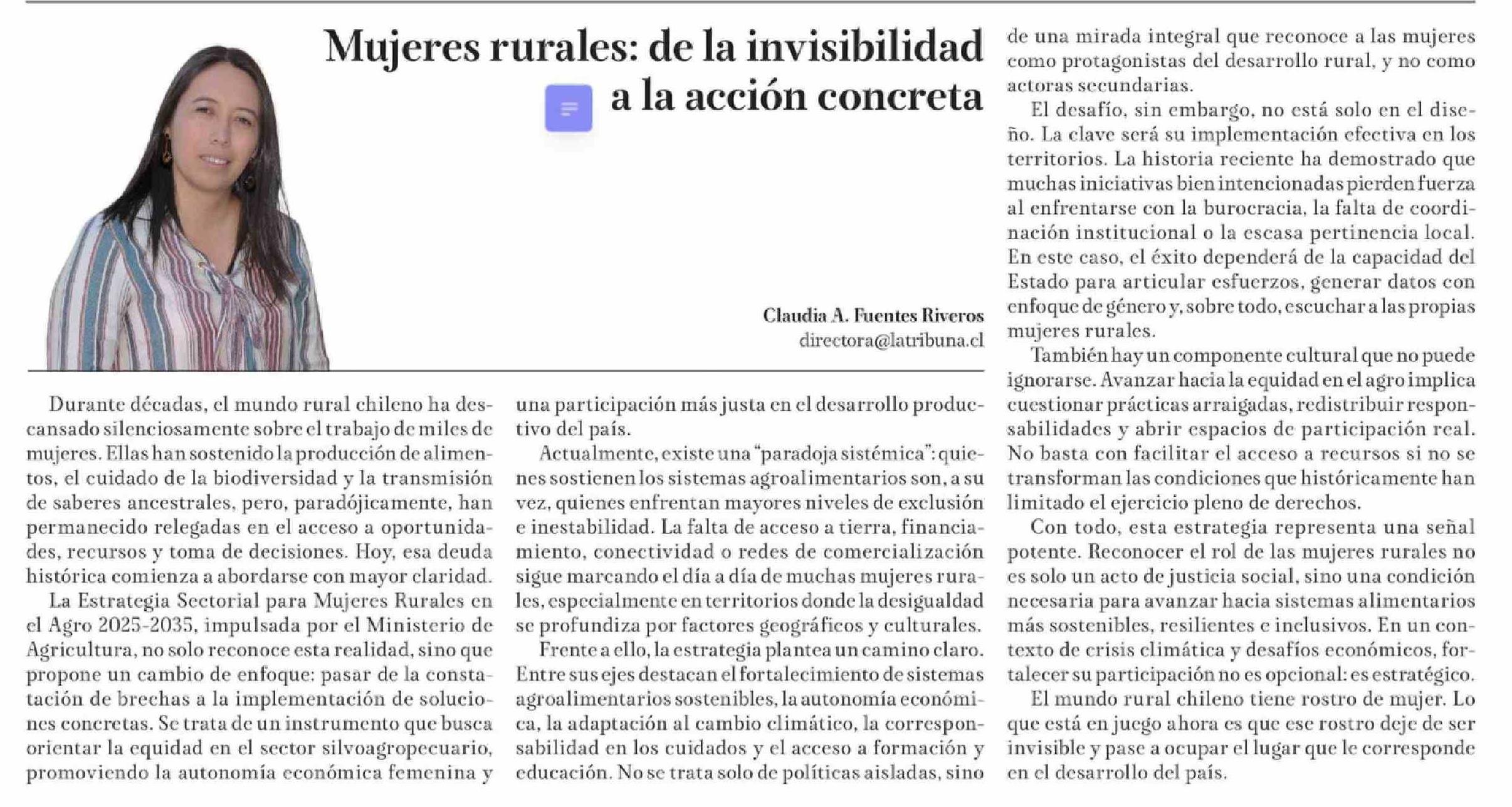 Título: Columnas de Opinión: Mujeres rurales: de la invisibilidad a la acción concreta