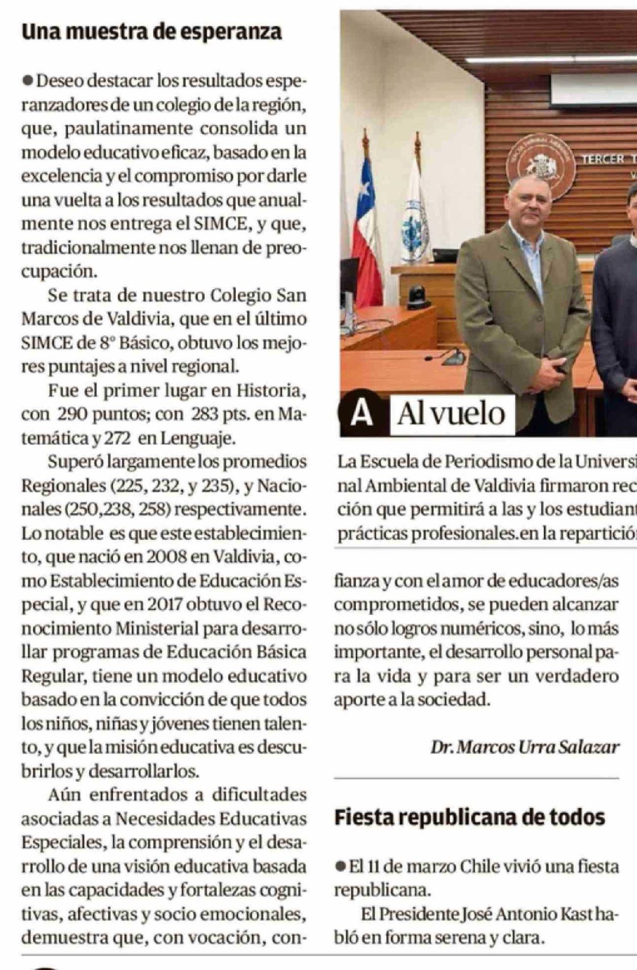 Cartas: Una muestra de esperanza 14-03-2026 Diario Austral Región de Los Ríos |