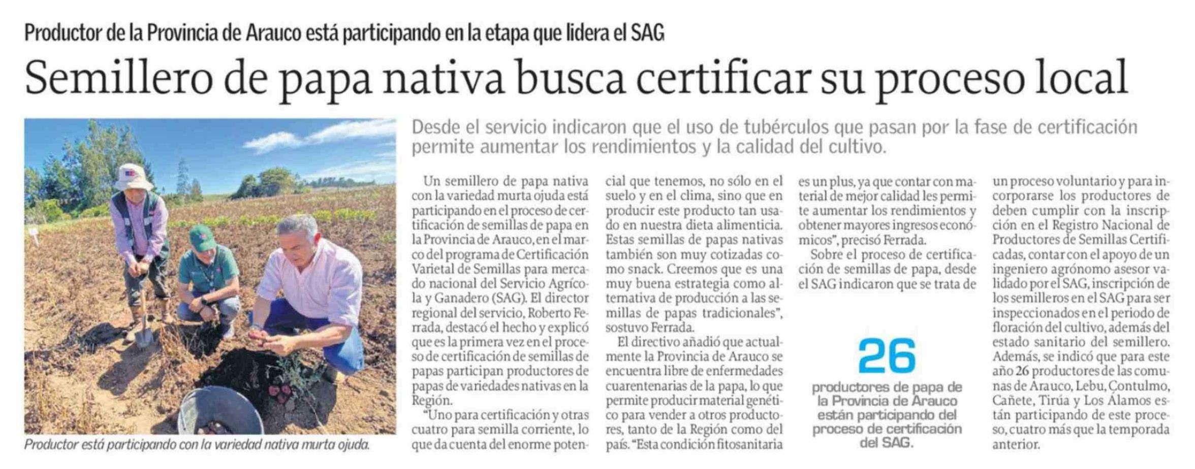 Semillero de papa nativa busca certificar su proceso local 13-03-2026 El Sur |