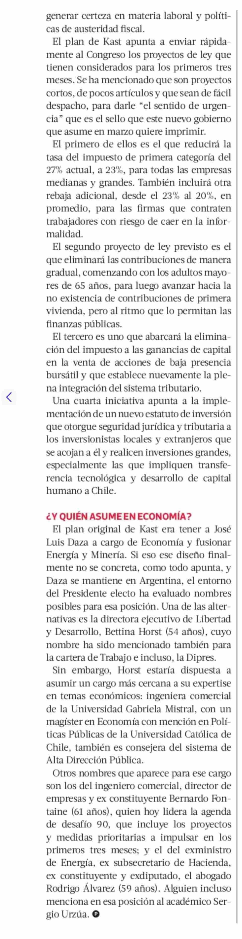 | Título: | Kast presentó a Quiroz como su futuro ministro de Hacienda y se diluye opción de ingreso de Daza al gabinete |