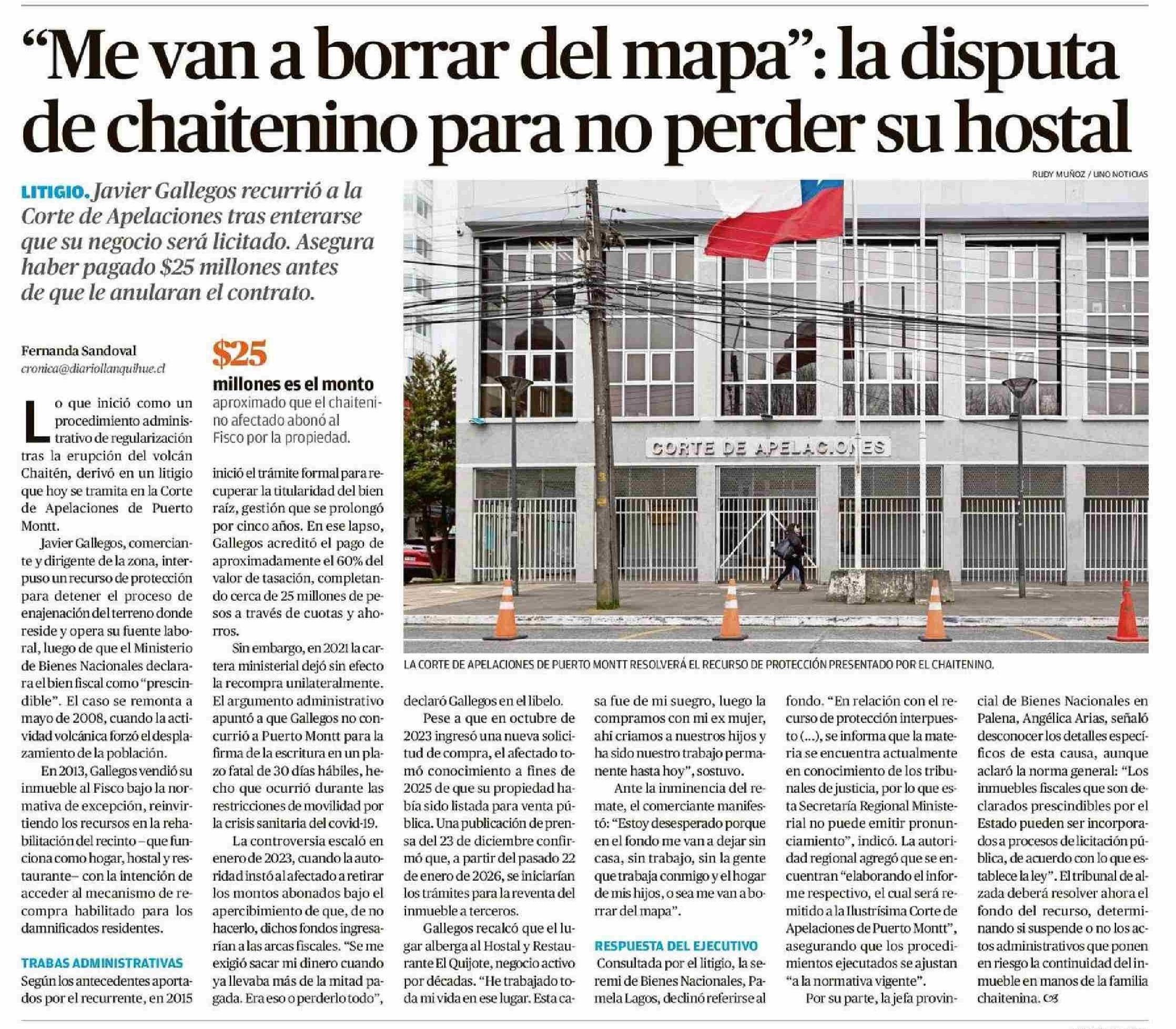 "Me van a borrar del mapa": la disputa de chaitenino para no perder su hostal 27-01-2026 El Llanquihue |