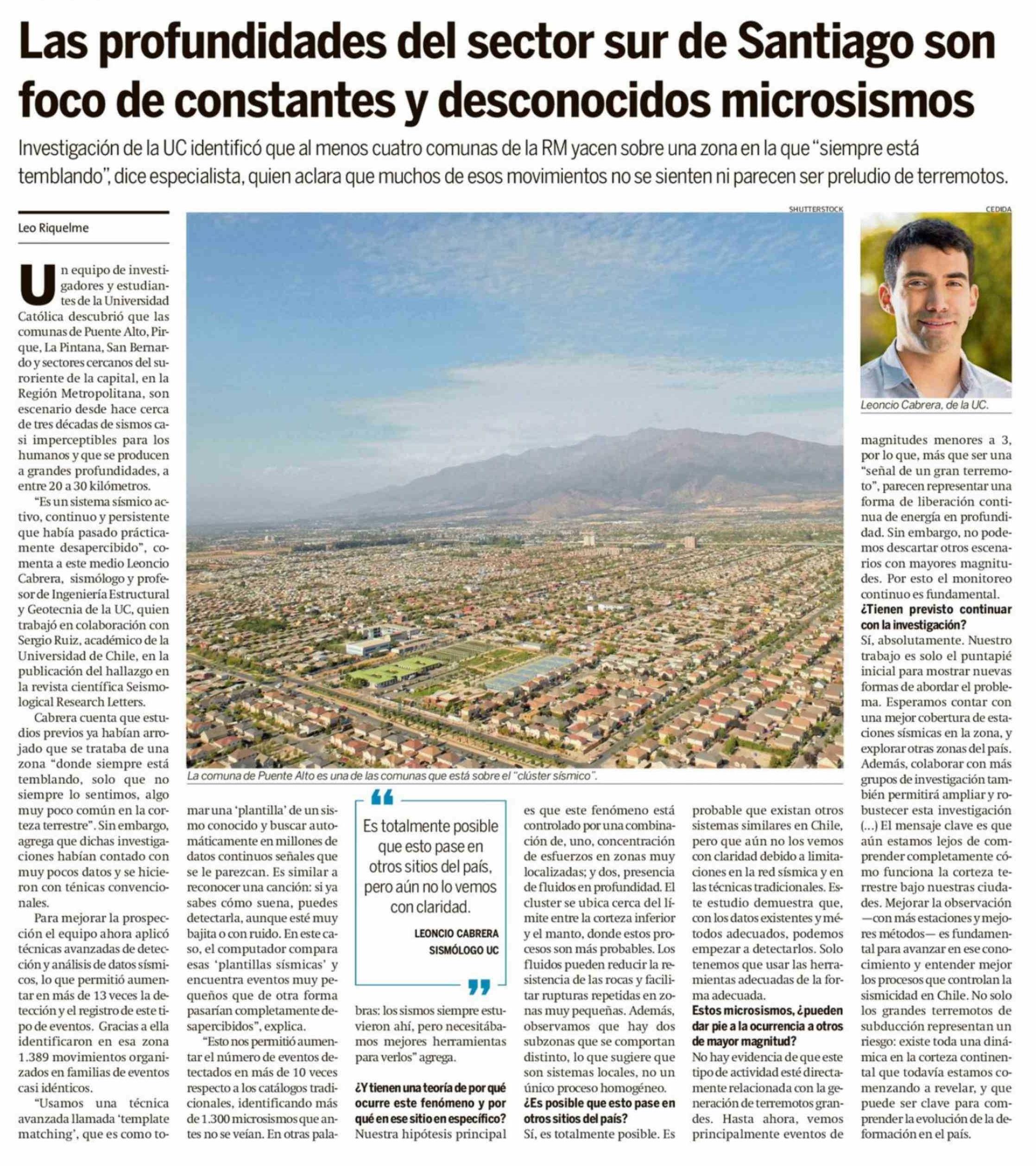 Título: Las profundidades del sector sur de Santiago son foco de constantes y desconocidos microsismos