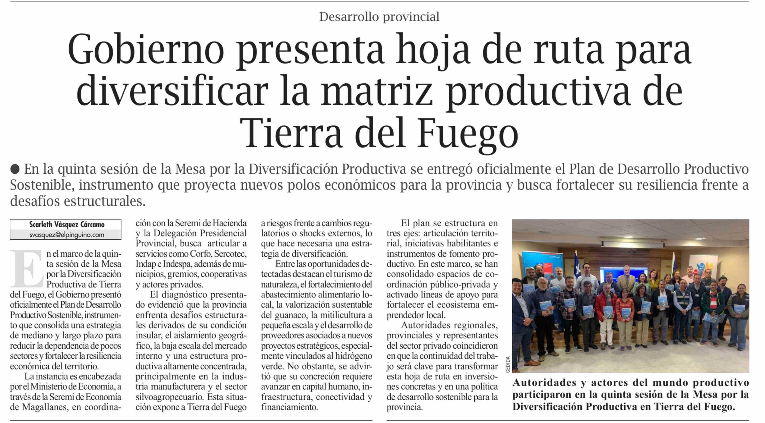 Gobierno presenta hoja de ruta para diversificar la matriz productiva de Tierra del Fuego 24-02-2026 El Pingüino |