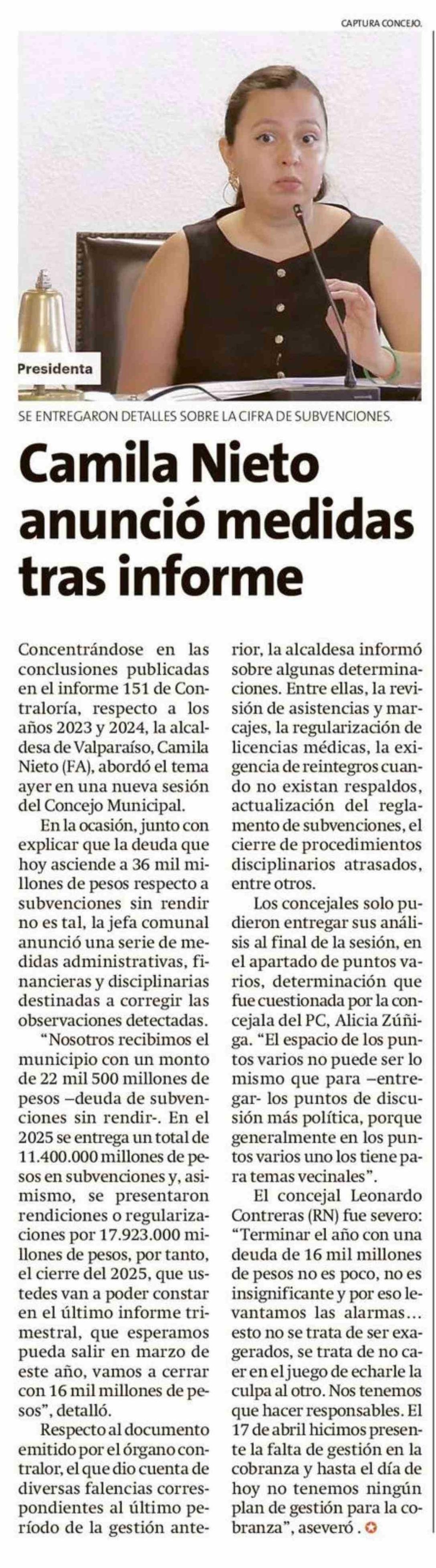 Camila Nieto anunció medidas tras informe 16-01-2026 La Estrella de Valparaíso |