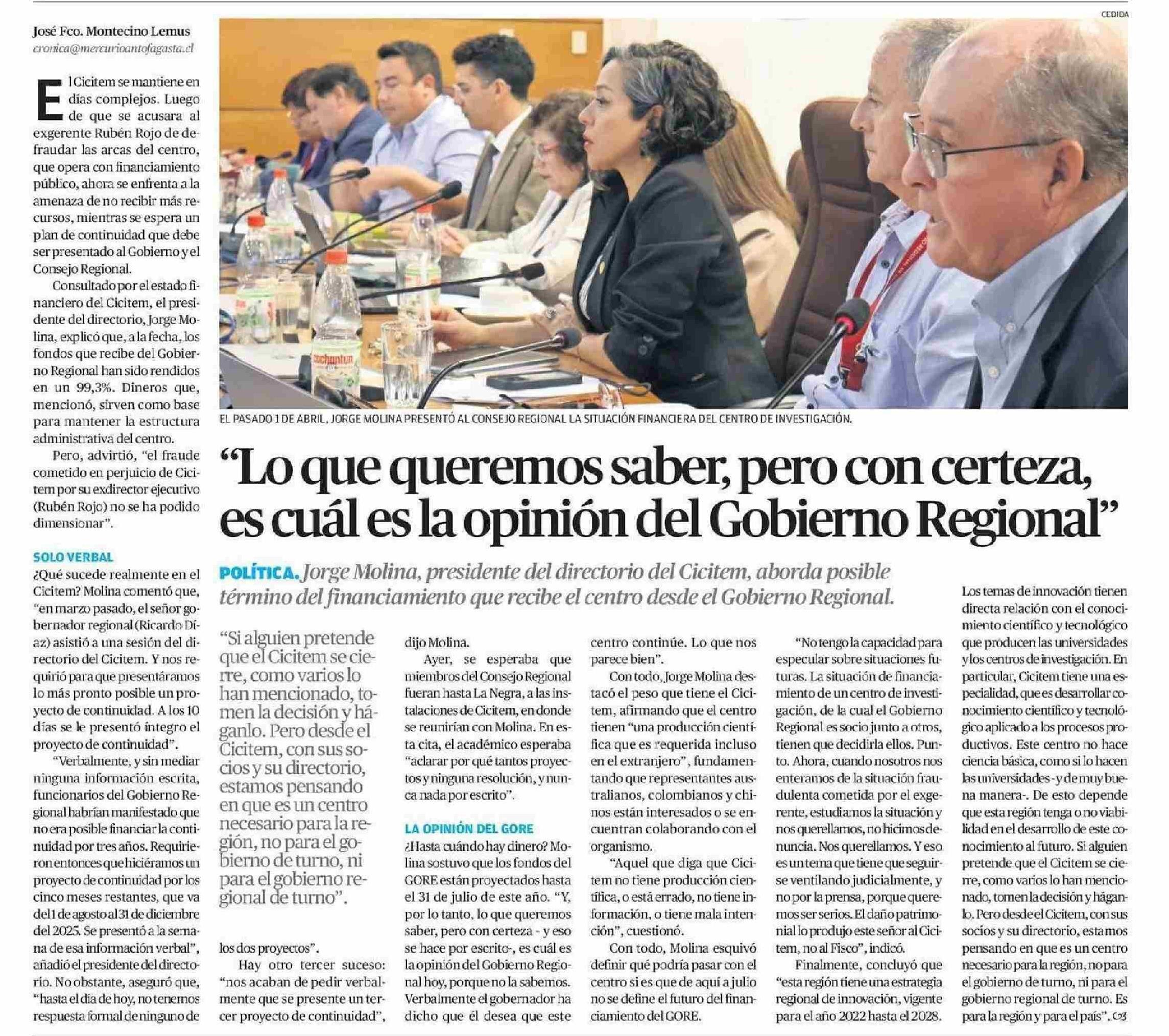 Título: "Lo que queremos saber, pero con certeza, es cuál es la opinión del Gobierno Regional"