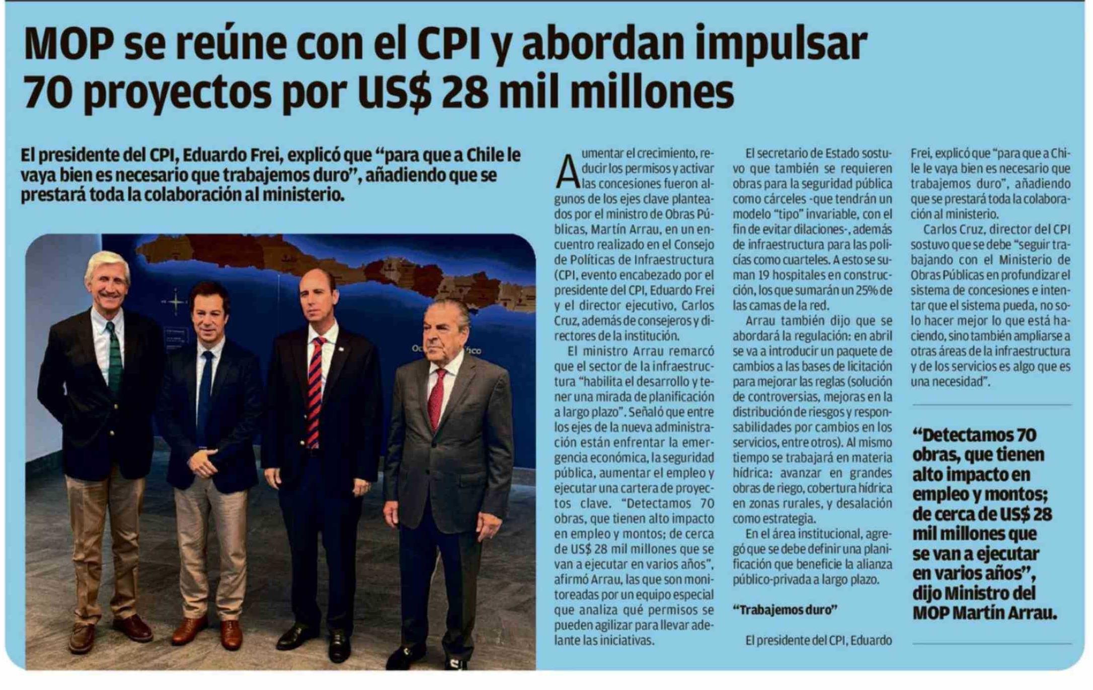 MOP se reúne con el CPI y abordan impulsar 70 proyectos por us$ 28 mil millones 31-03-2026 La Estrella de Iquique |