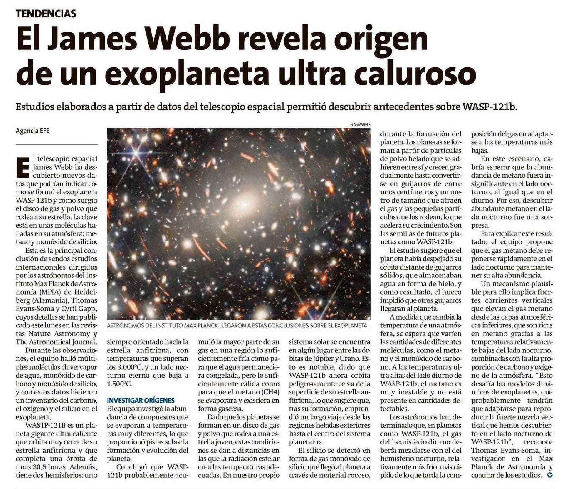 El James Webb revela origen de un exoplaneta ultra caluroso 03-06-2025 El Líder |