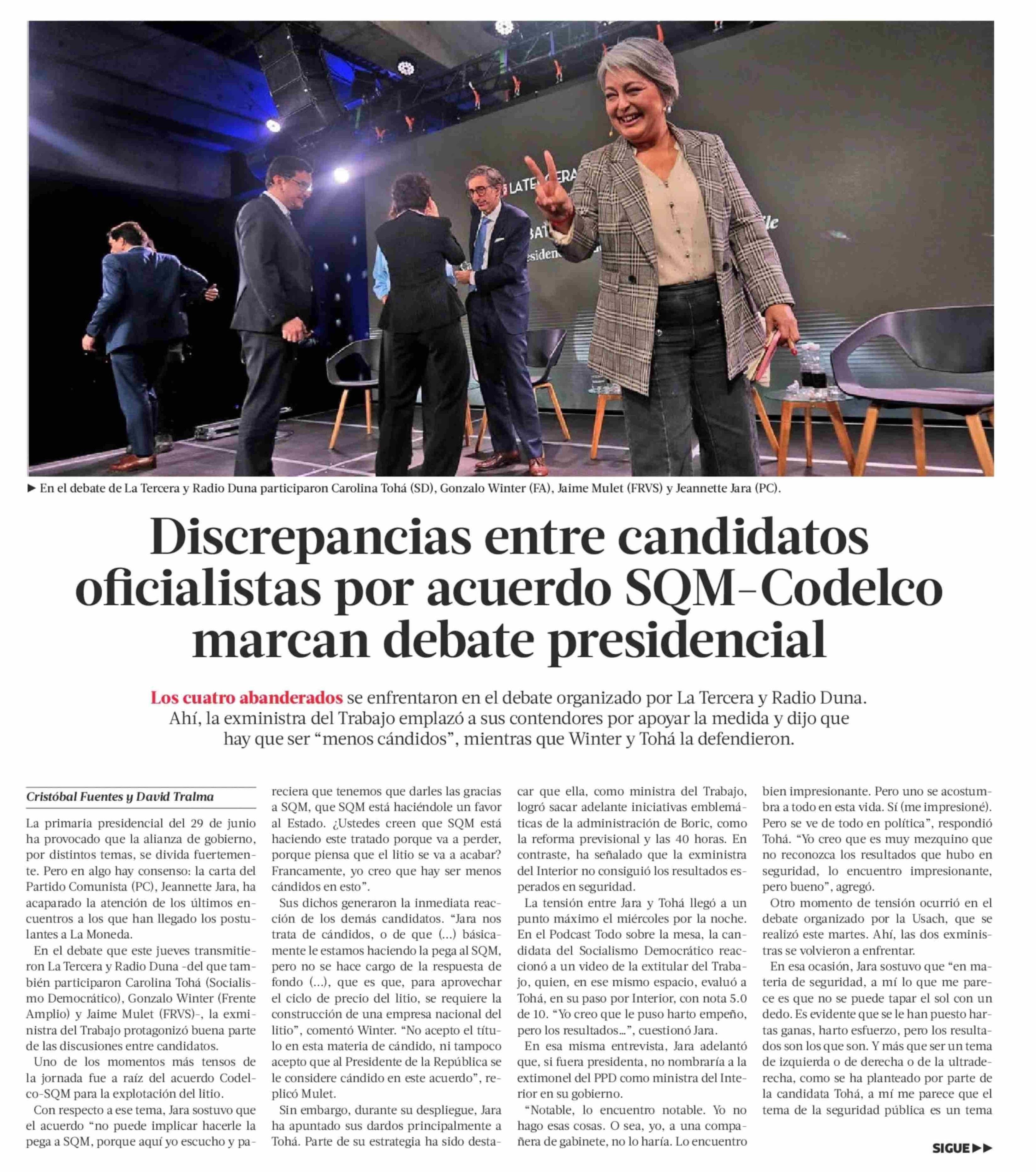 Discrepancias entre candidatos oficialistas por acuerdo SQM-Codelco marcan debate presidencial 06-06-2025 La Tercera |