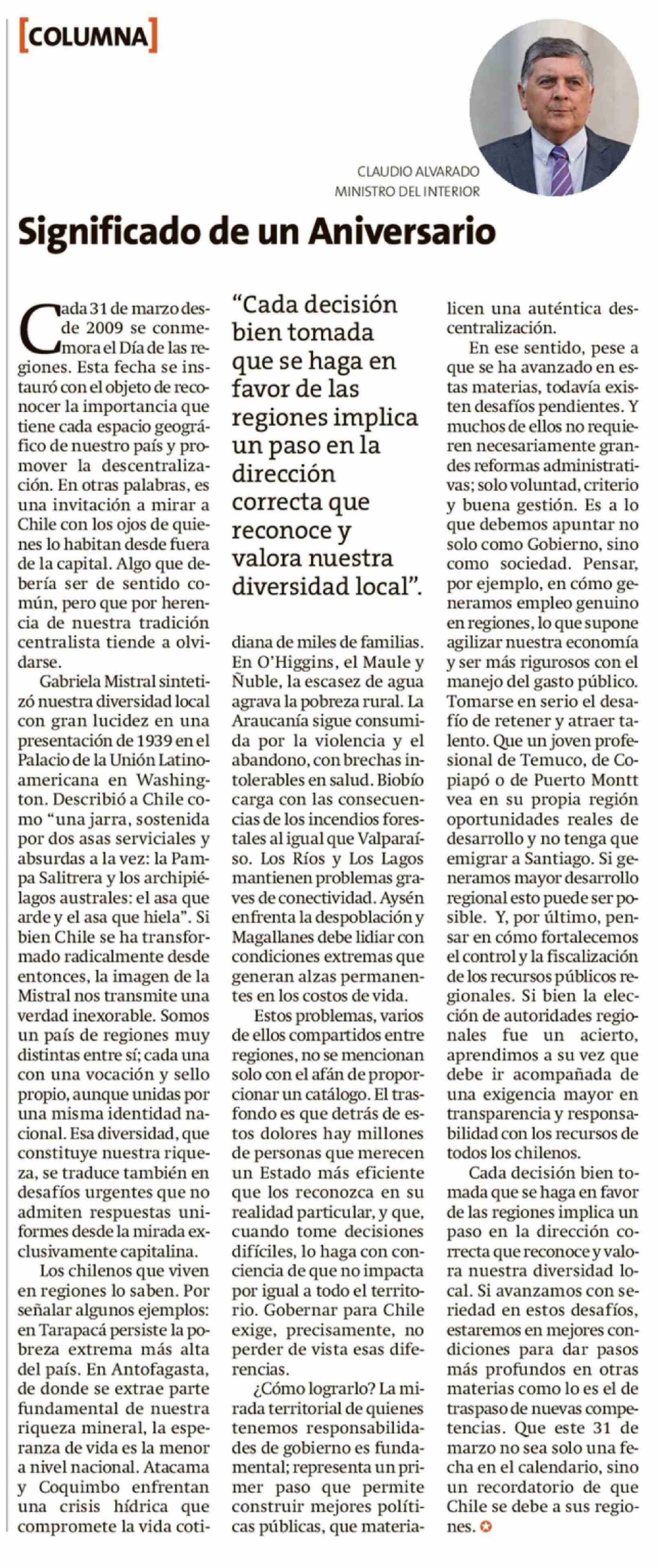 Columnas de Opinión: Significado de un Aniversario 31-03-2026 La Estrella de Chiloé |