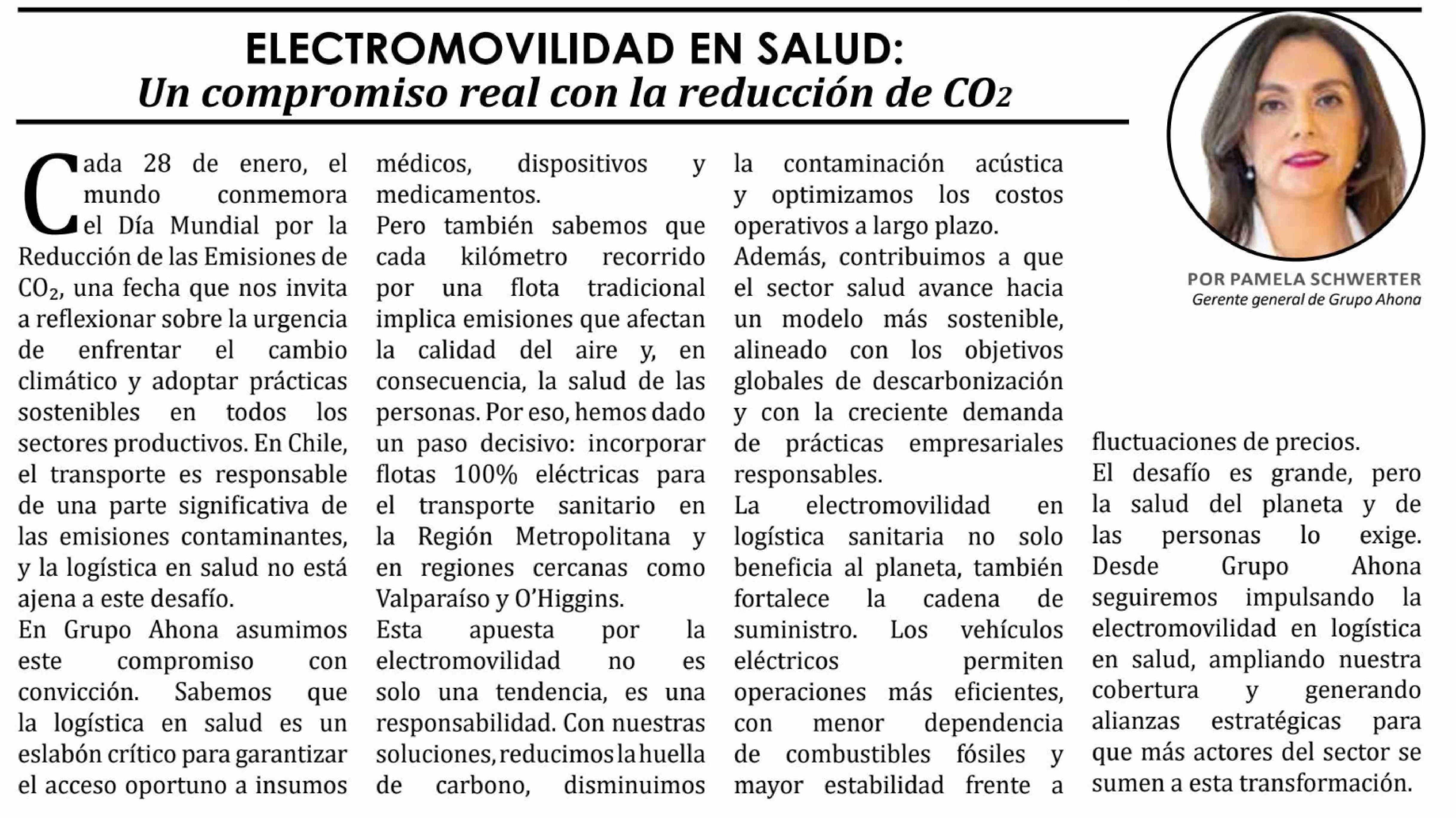 | Título: | Columnas de Opinión: ELECTROMOVILIDAD EN SALUD: Un compromiso real con la reducción de CO2 |