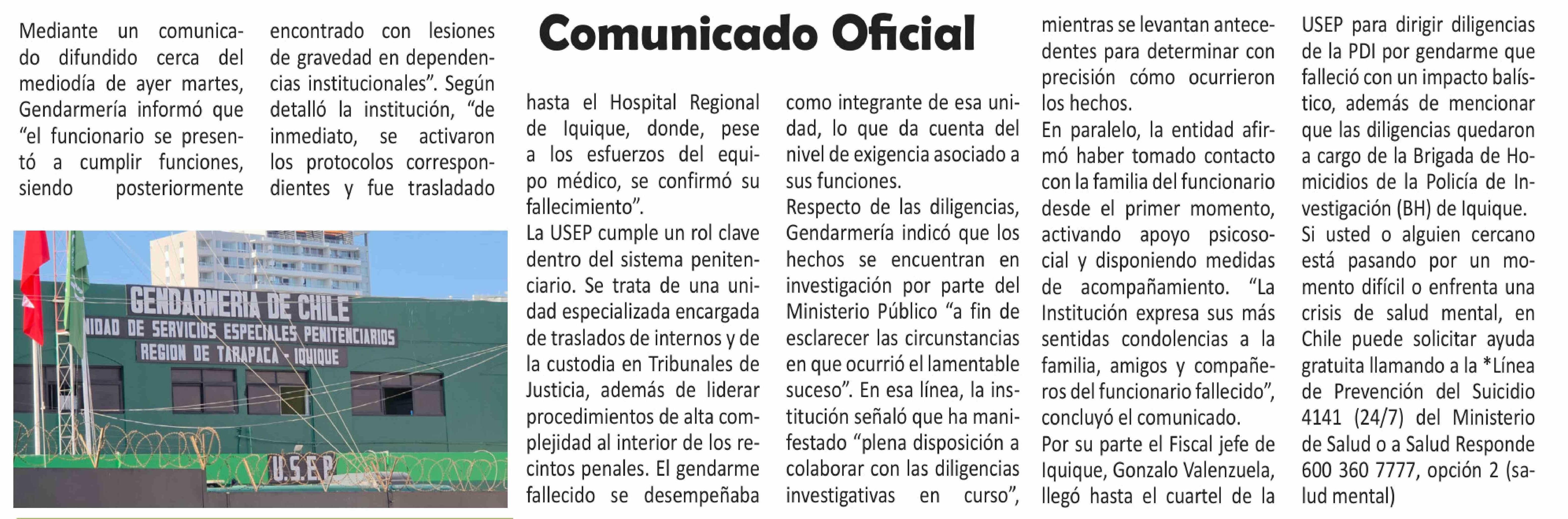 | Fecha: | 11-02-2026 | Sector: | Noticia general | Región: | Región de Tarapacá |