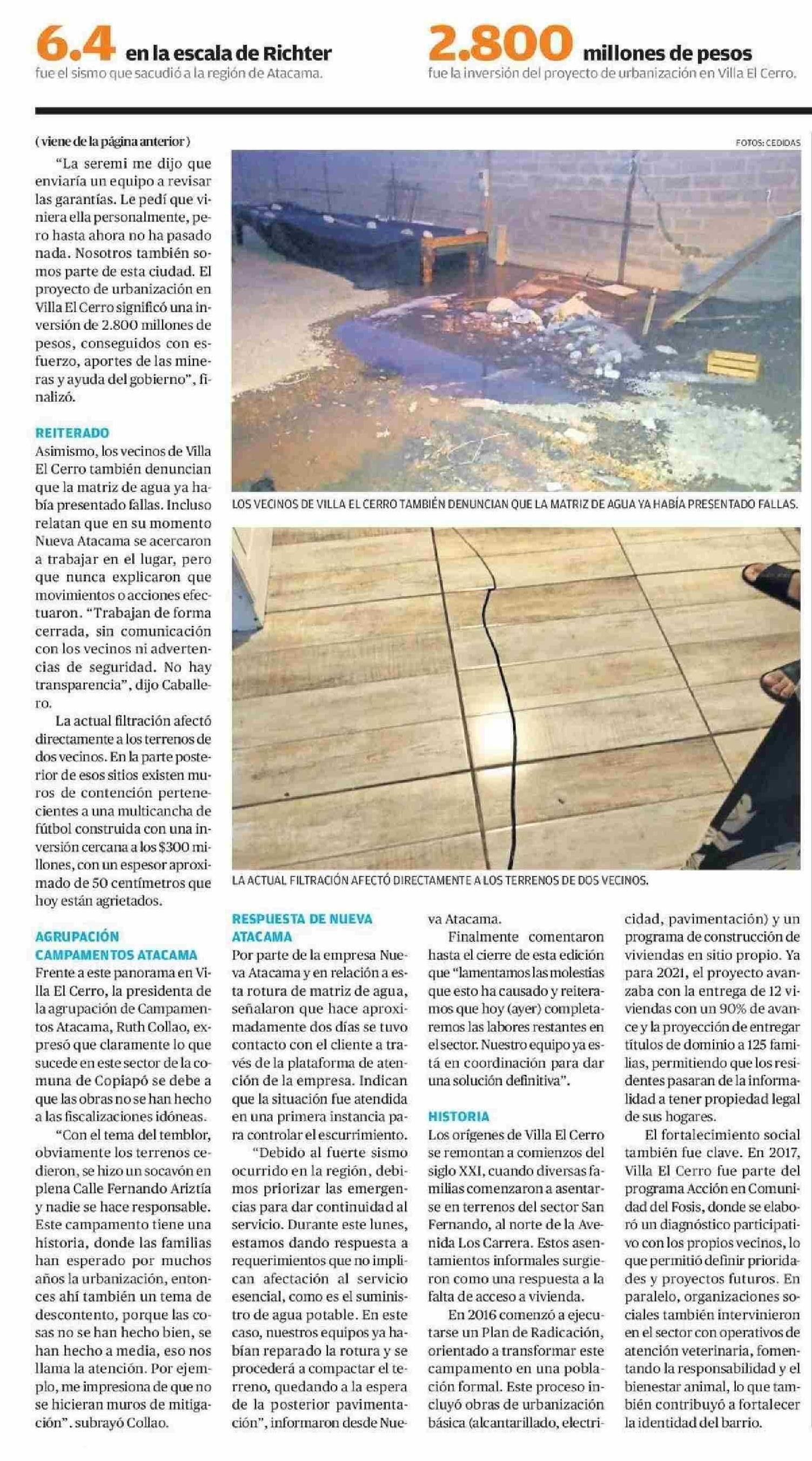 Villa El Cerro enfrenta severos daños tras movimiento telúrico: erietas y riesgo de colapso vial 10-06-2025 El Diario de Atacama |