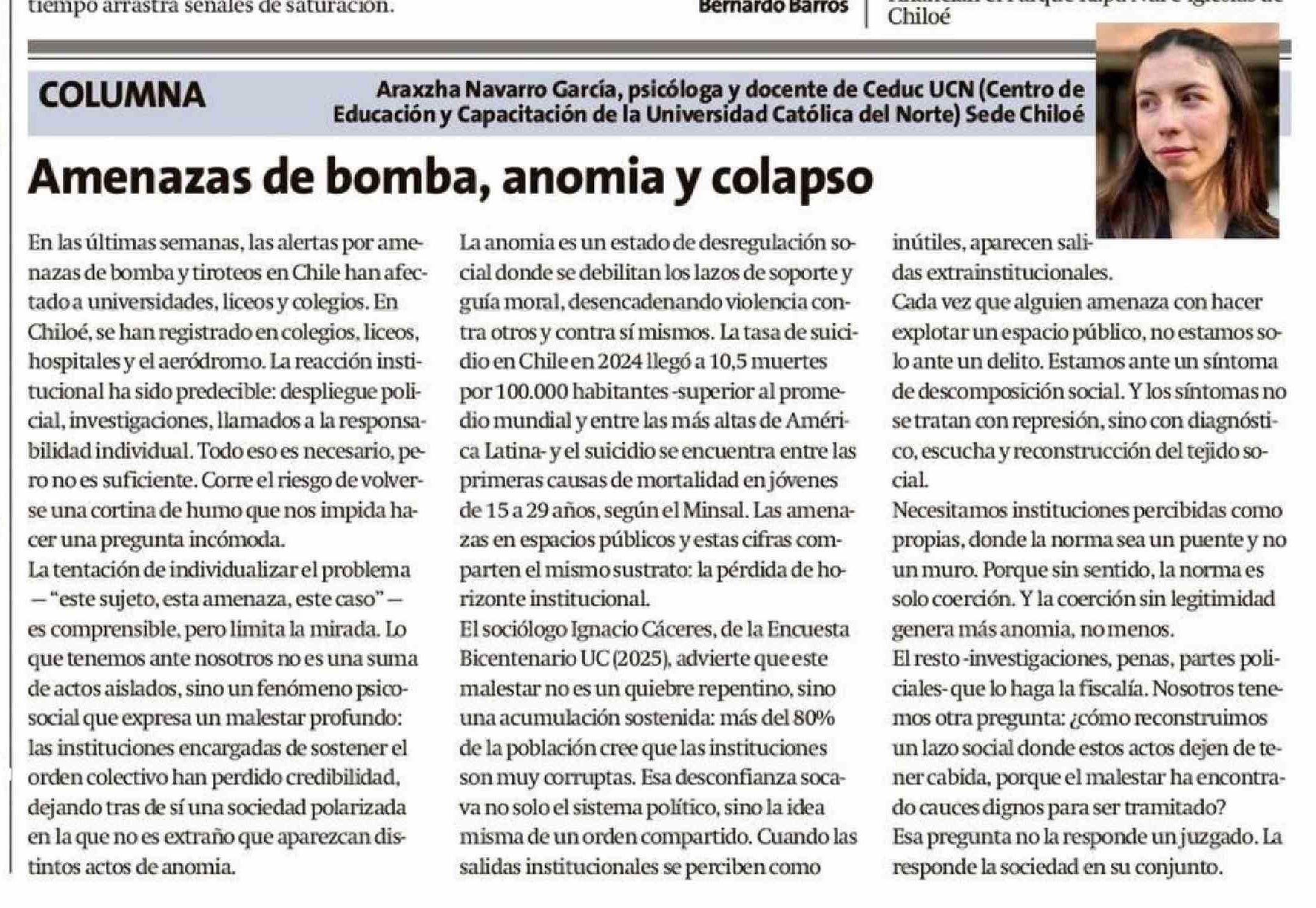 Columnas de Opinión: Amenazas de bomba, anomia y colapso 26-04-2026 La Estrella de Chiloé |
