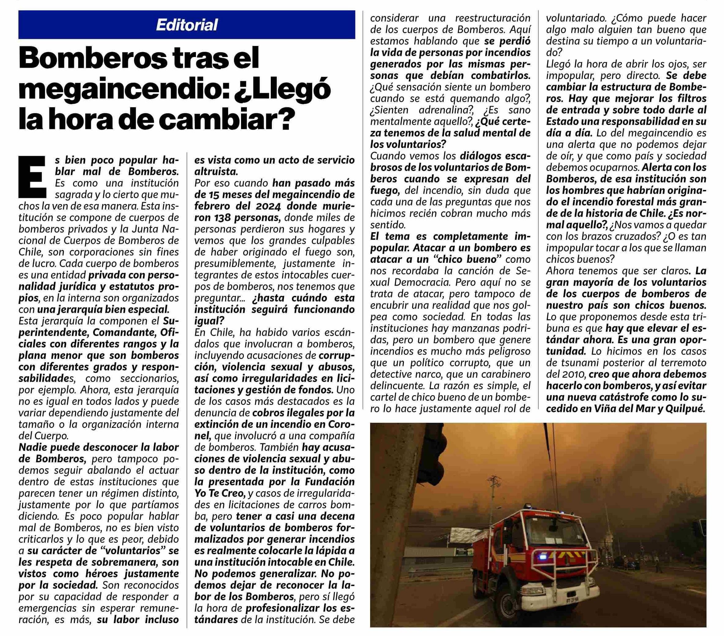 Bomberos tras el megaincendio: ¿Llegó la hora de cambiar? 23-05-2025 Puranoticia.cl |