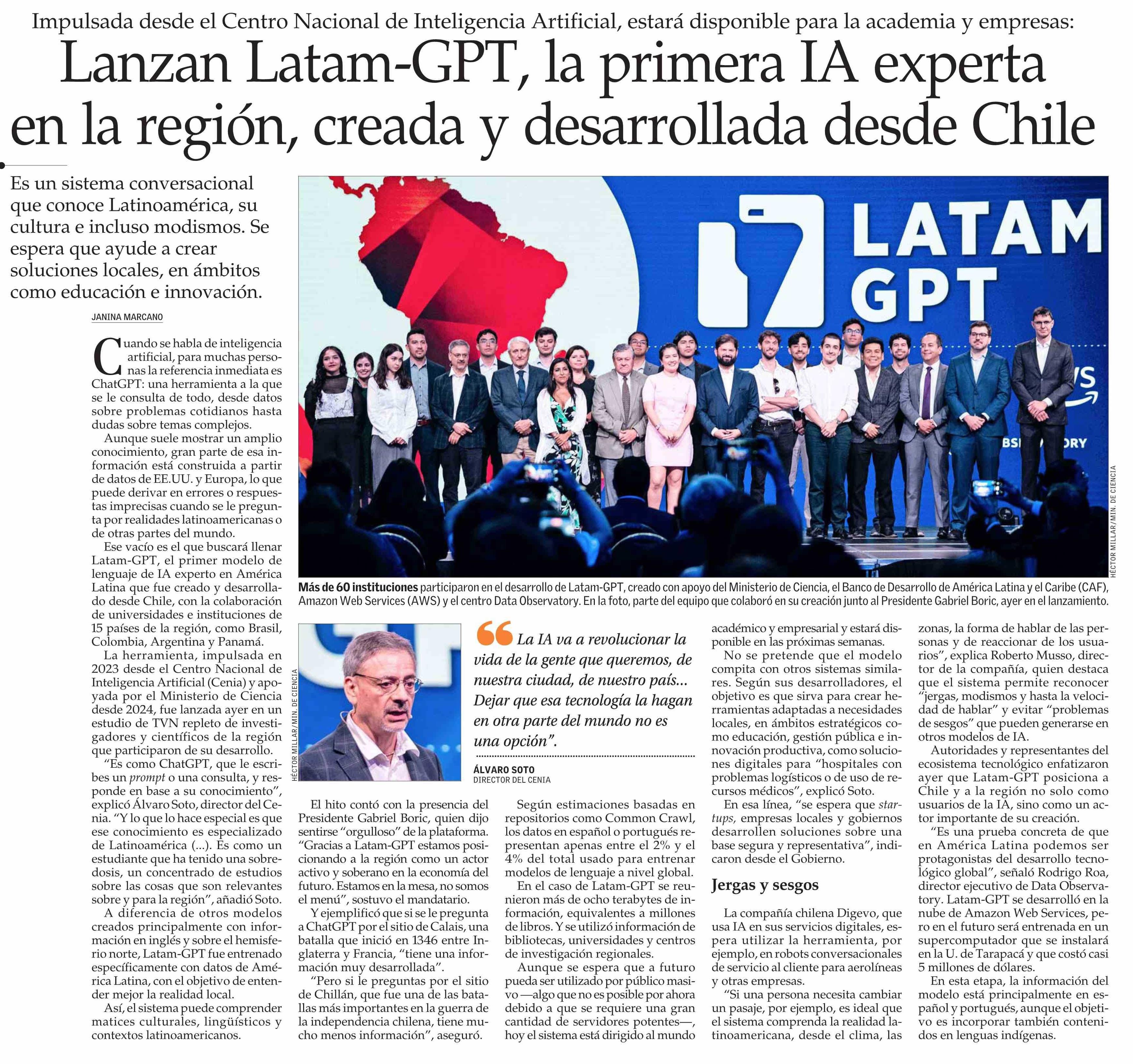 Título: Lanzan Latam-GPT, la primera IA experta en la región, creada y desarrollada desde Chile