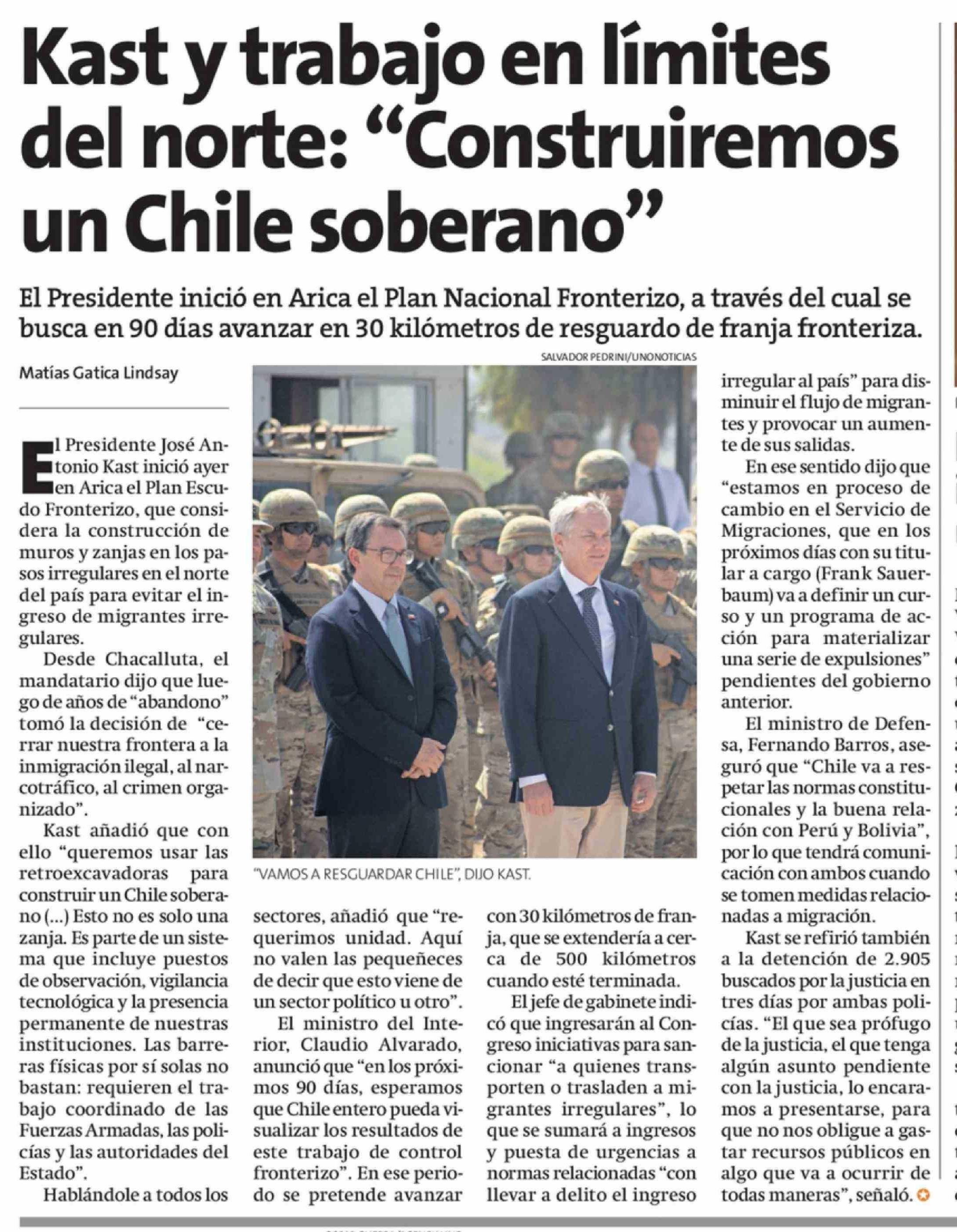 Kast y trabajo en límites del norte: "Construiremos un Chile soberano" 17-03-2026 La Estrella de Concepción |