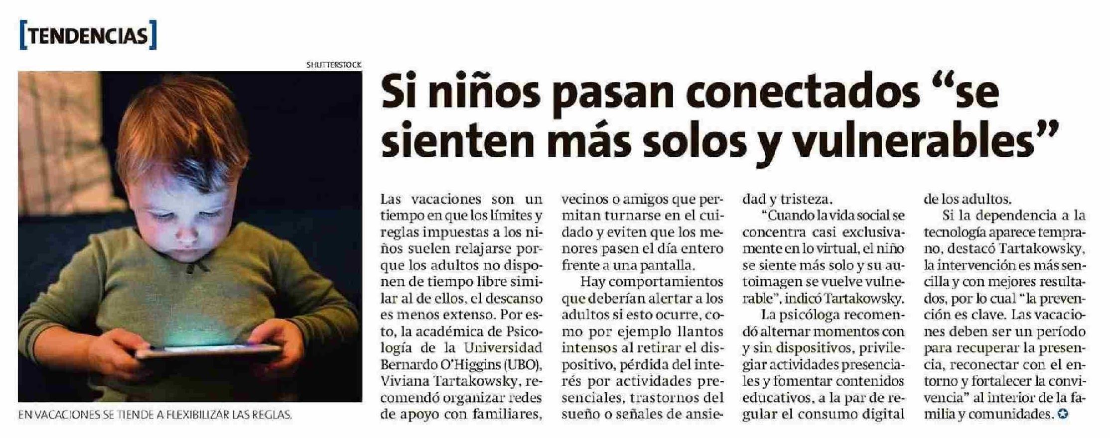 Si niños pasan conectados "se sienten más solos y vulnerables" 08-01-2026 La Estrella de Chiloé |