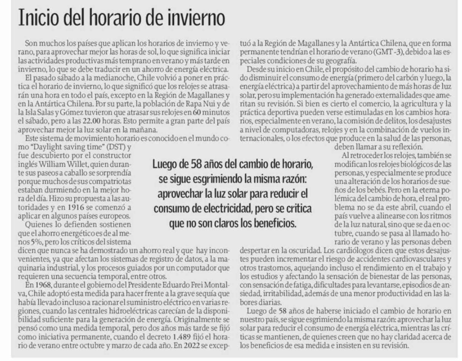 EDITORIAL: Inicio del horario de invierno 09-04-2026 El Sur |