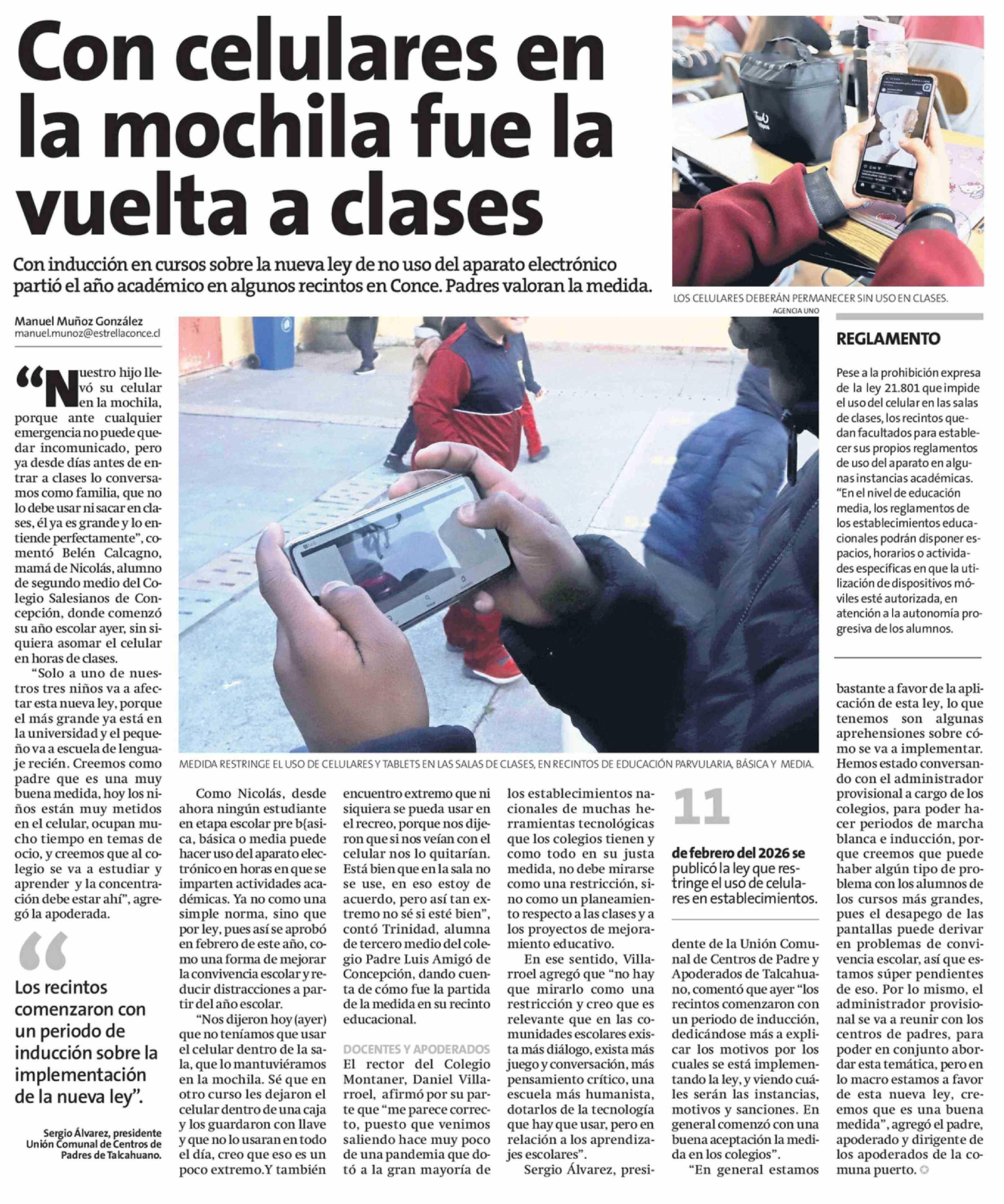 Con celulares en la mochila fue la vuelta a clases 05-03-2026 La Estrella de Concepción |