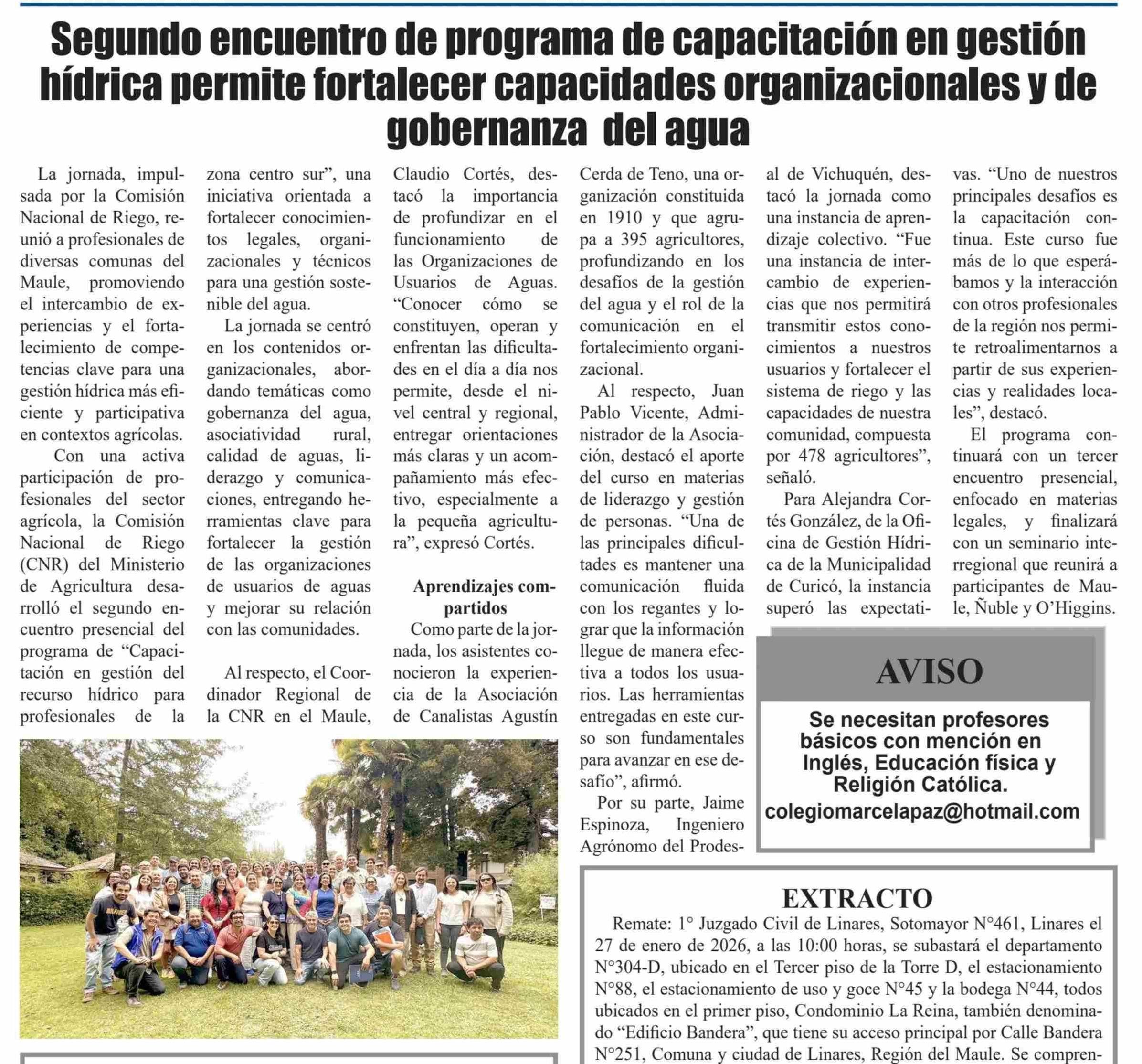 | Fecha: | 14-01-2026 | Sector: | Noticia general | Región: | Región del Maule |