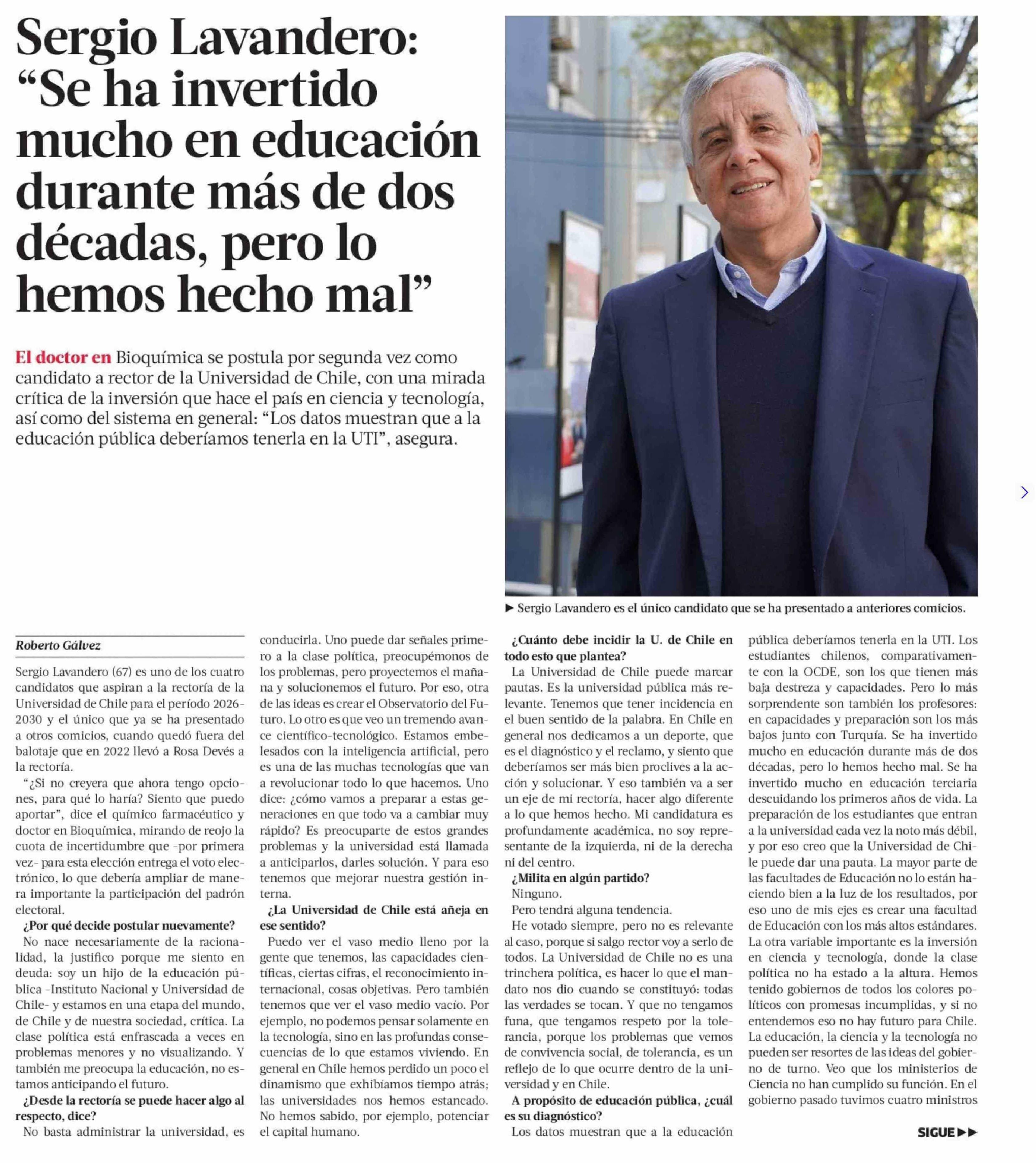 Título: Sergio Lavandero: "Se ha invertido mucho en educación durante más de dos décadas, pero lo hemos hecho mal"