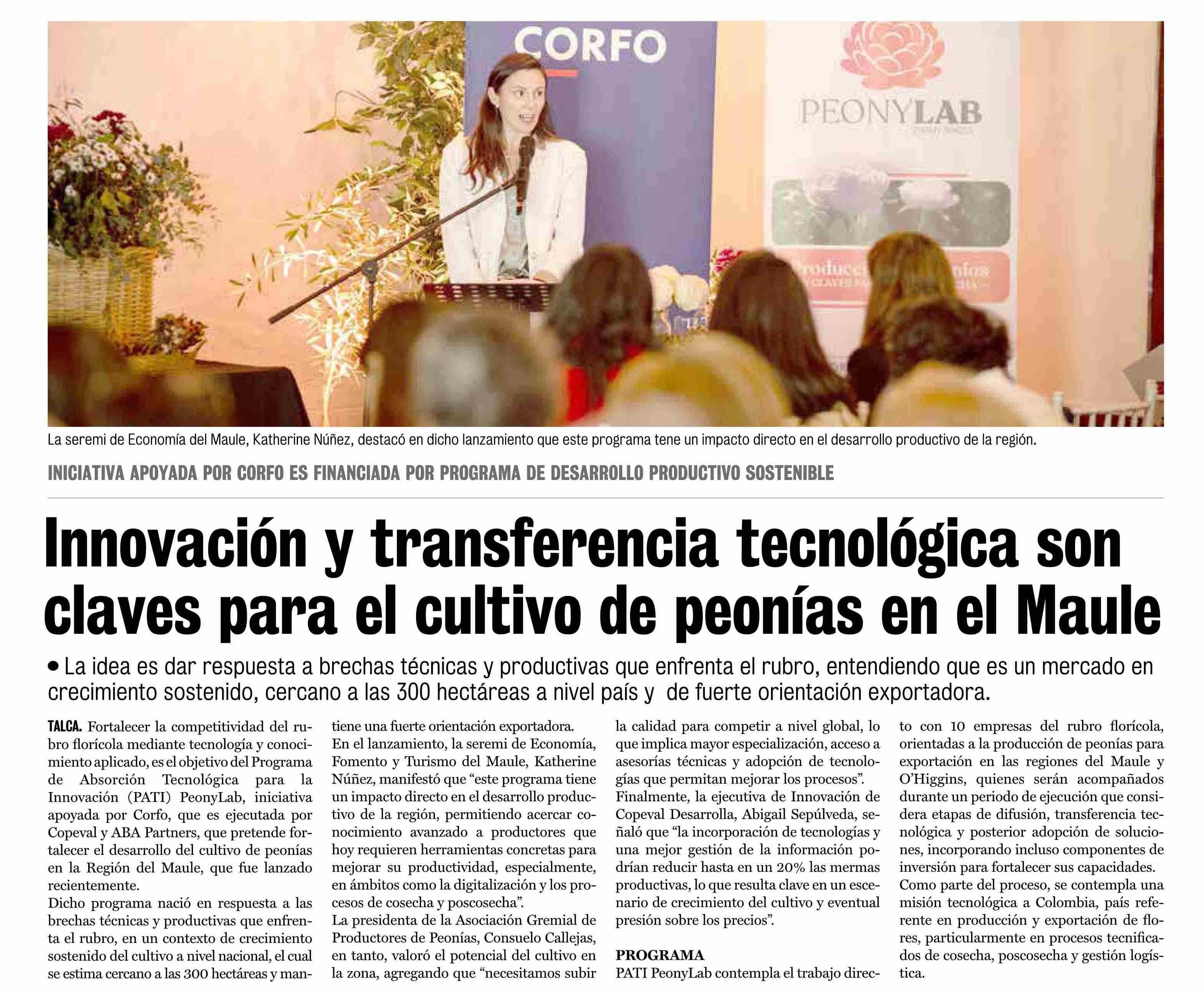 Título: Innovación y transferencia tecnológica son claves para el cultivo de peonías en el Maule