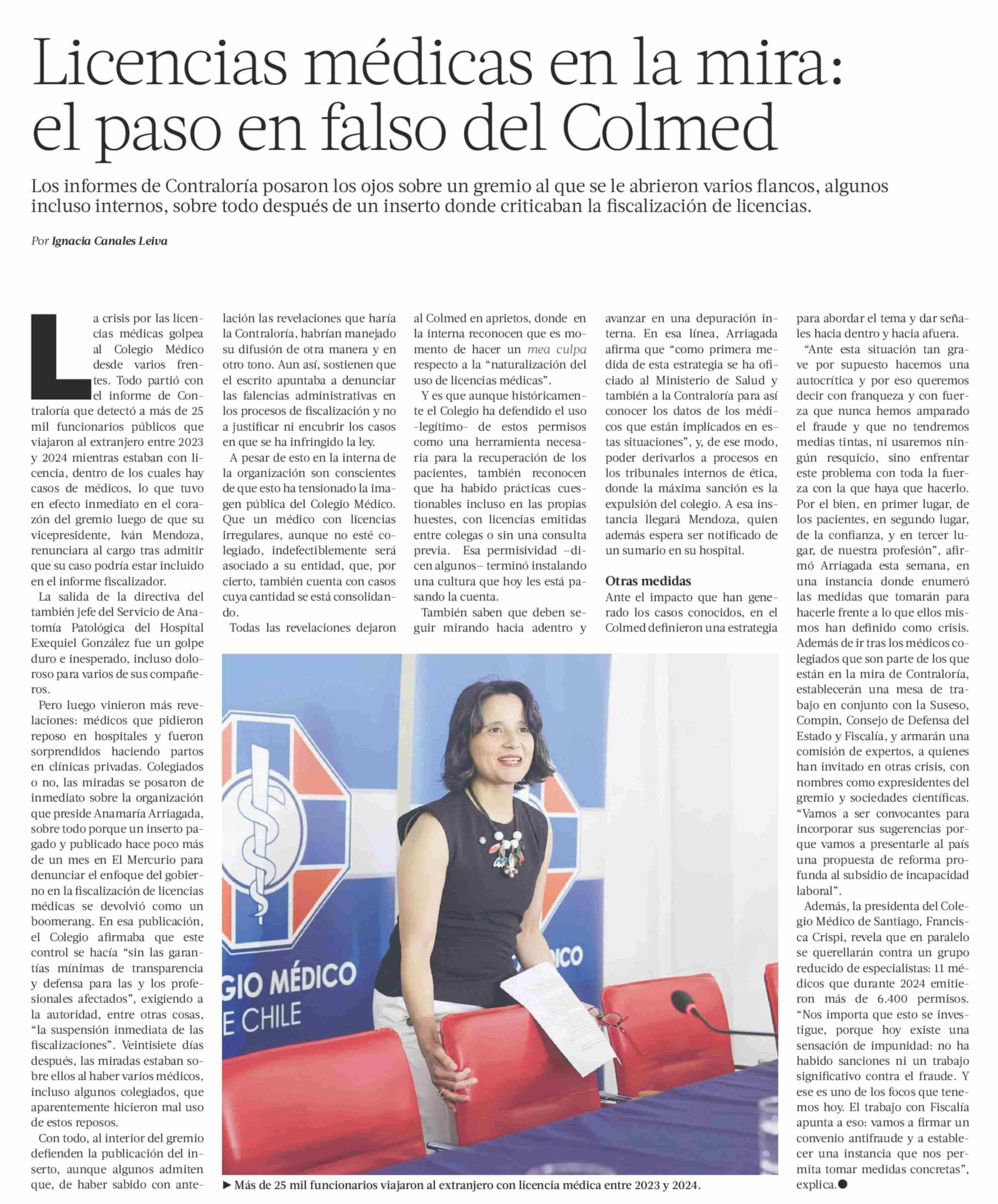 Licencias médicas en la mira: el paso en falso del Colmed 31-05-2025 La Tercera |
