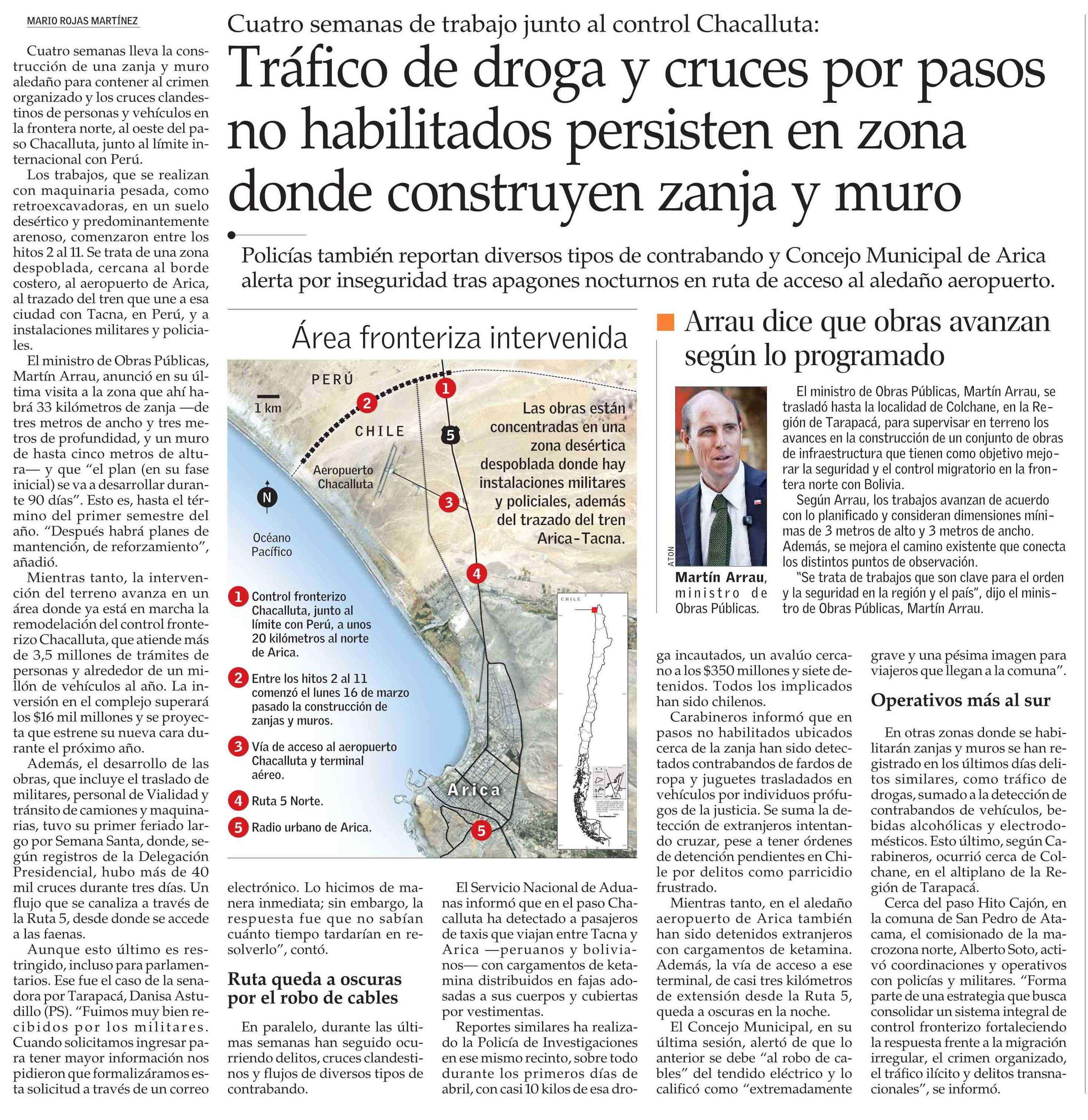 Título: Tráfico de droga y cruces por pasos no habilitados persisten en zona donde construyen zanja y muro