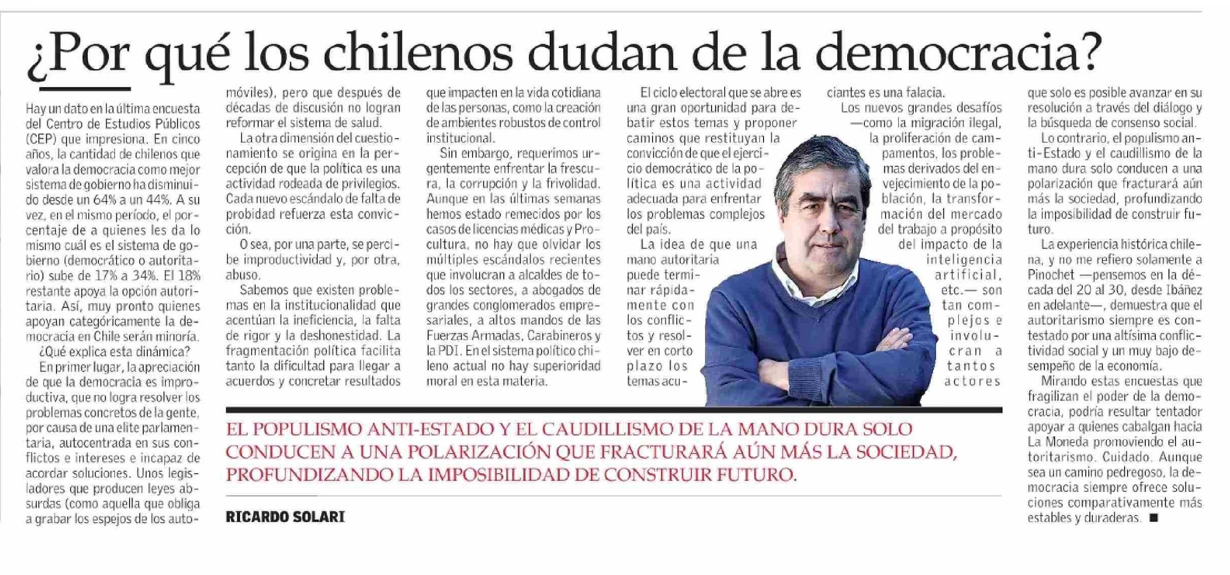 | Título: | COLUMNAS DE OPINIÓN: ¿Por qué los chilenos dudan de la democracia? |