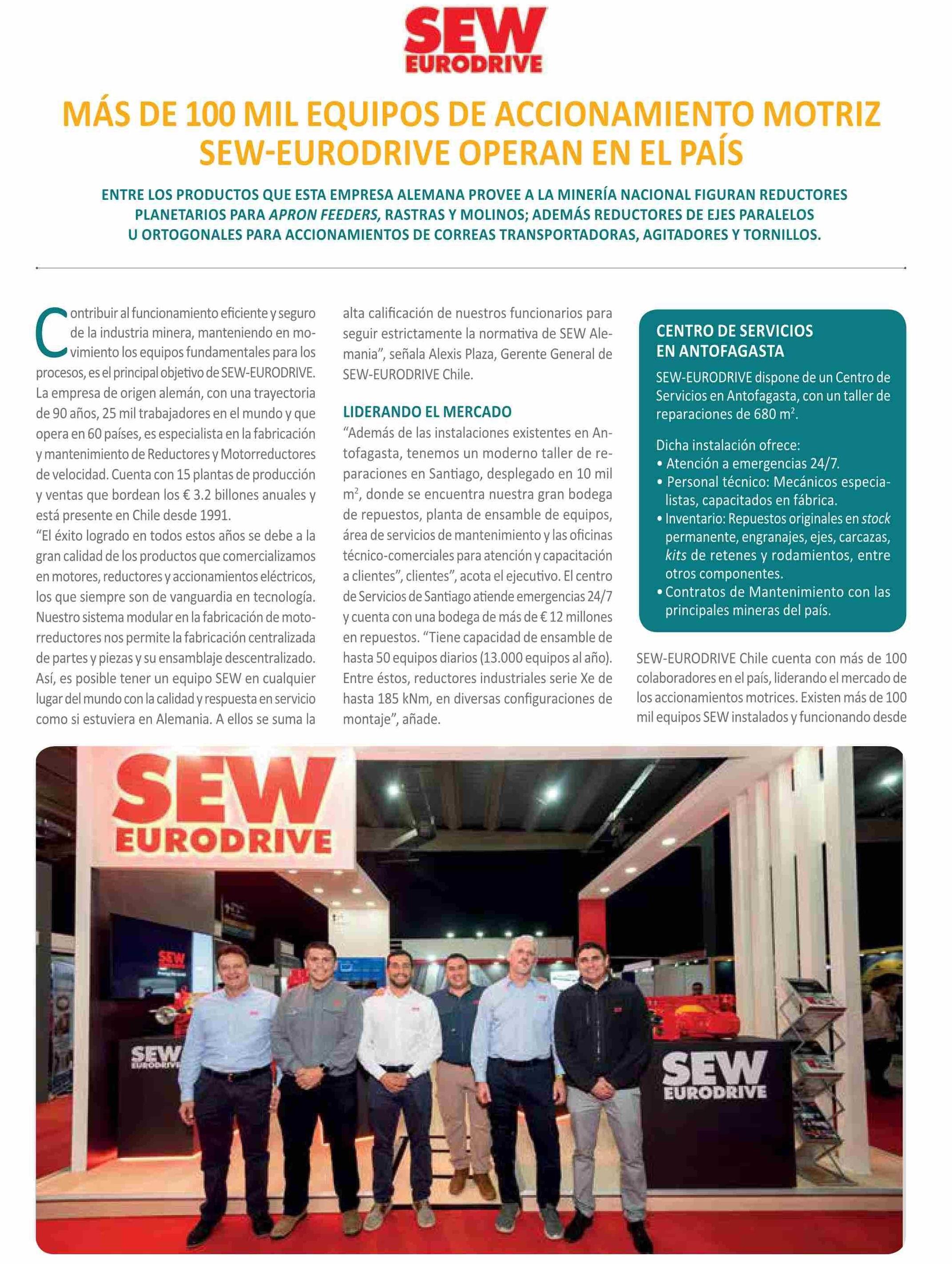 MÁS DE 100 MIL EQUIPOS DE ACCIONAMIENTO MOTRIZ SEW-EURODRIVE OPERAN EN EL PAÍS 27-05-2025 Revista Minería Chilena |