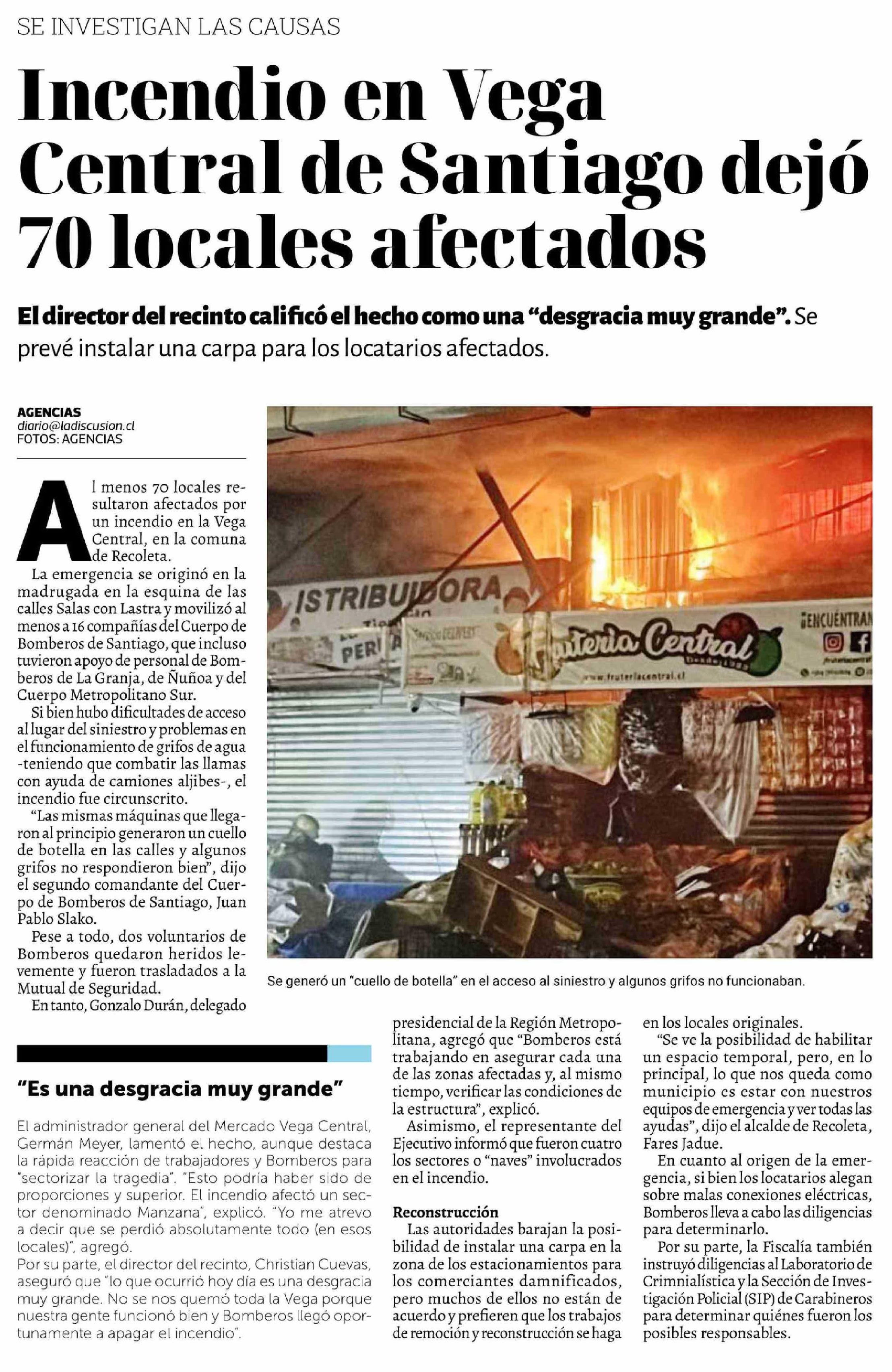 Incendio en Vega Central de Santiago dejó 70 locales afectados 09-02-2026 La Discusión |