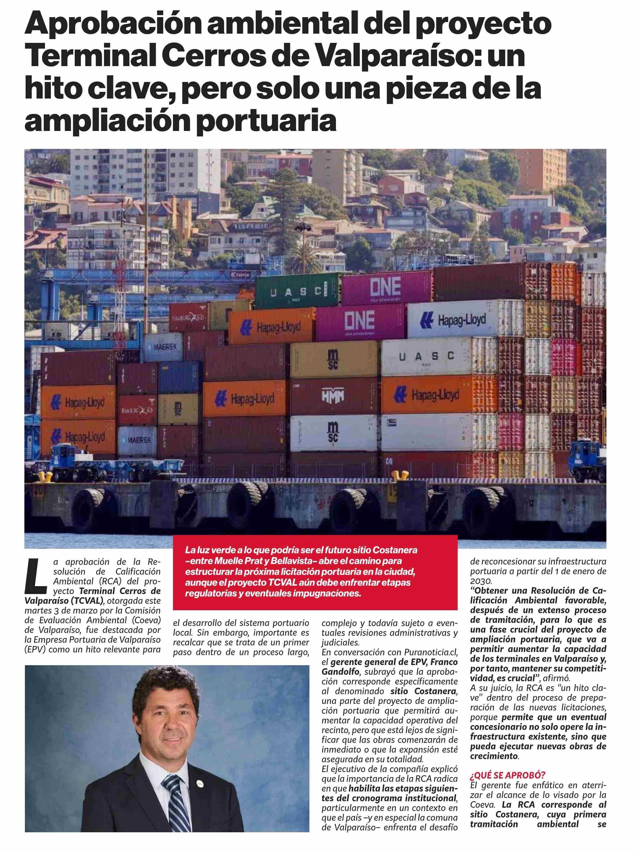 Aprobación ambiental del proyecto Terminal Cerros de Valparaíso: un hito clave, pero solo una pieza de la ampliación portuaria 04-03-2026 Puranoticia.cl |