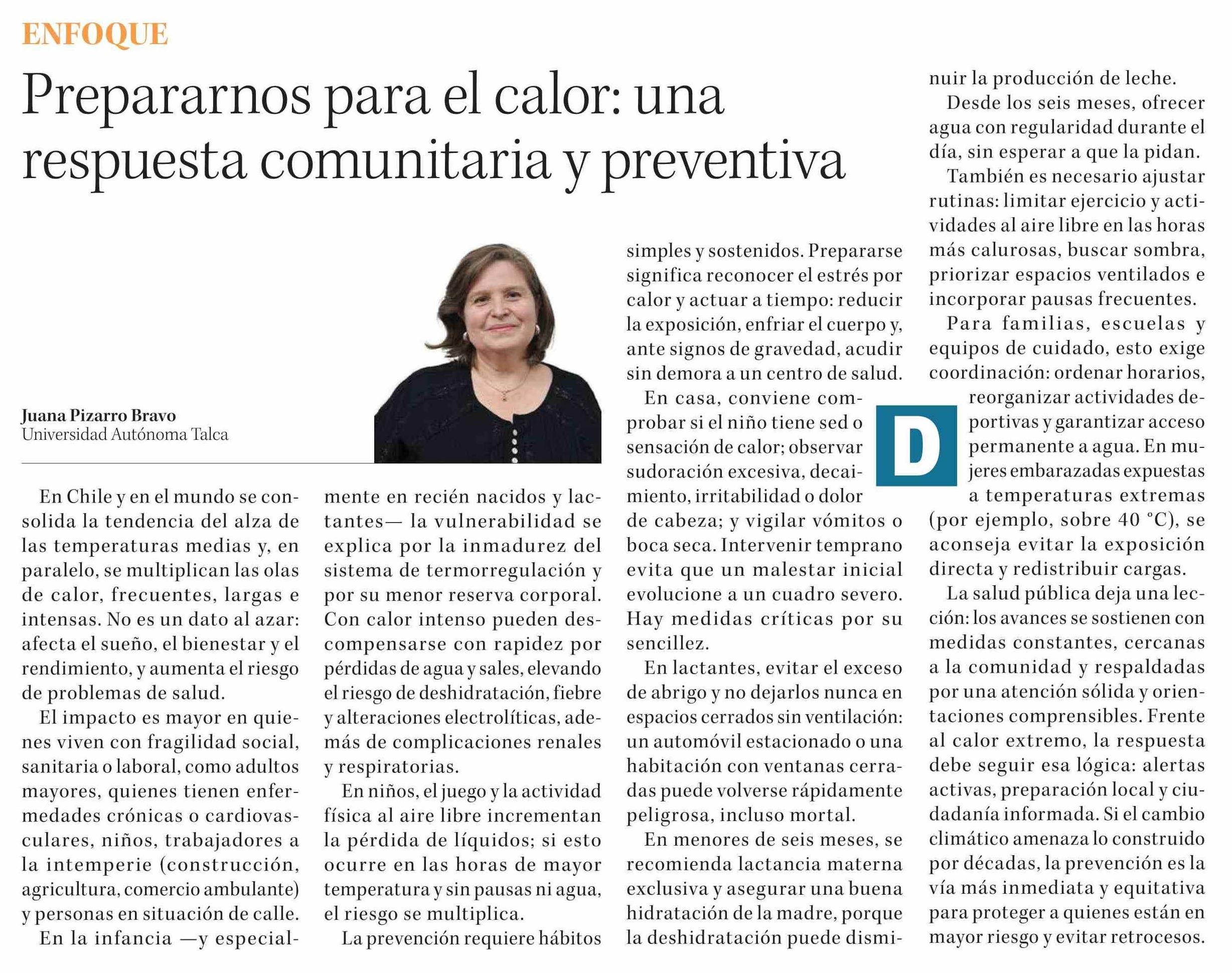 Columnas de Opinión: Prepararnos para el calor: una respuesta comunitaria y preventiva 19-01-2026 Diario Concepción |