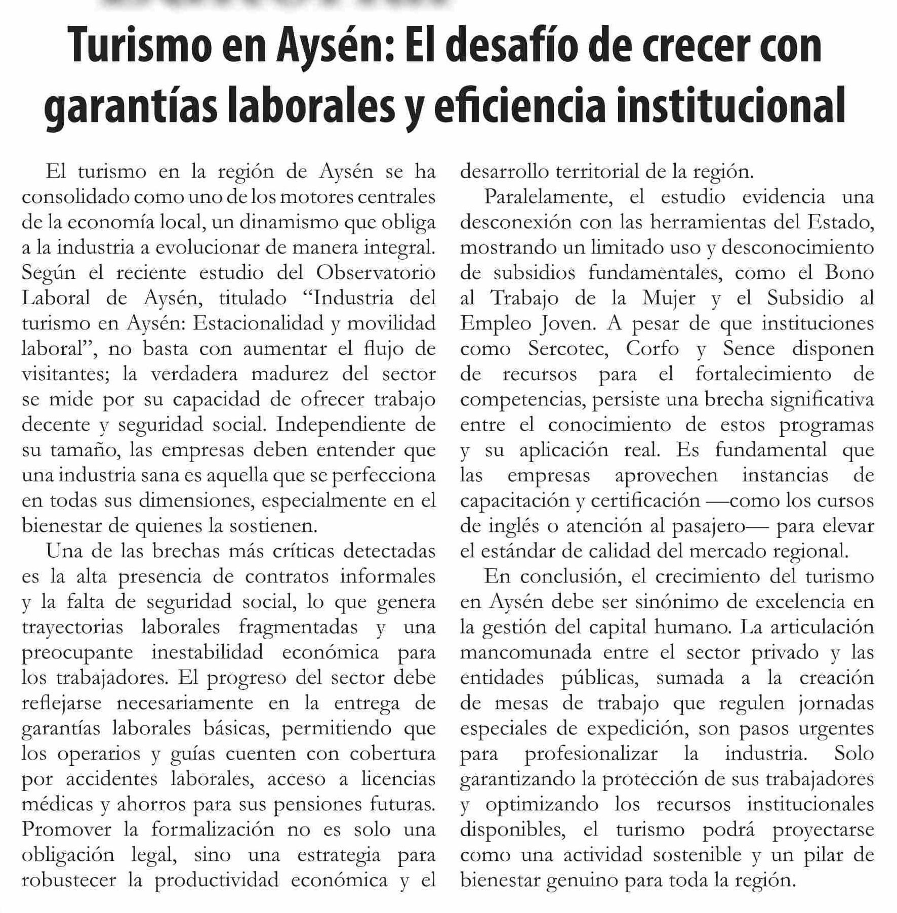 Título: Editorial: Turismo en Aysén: El desafío de crecer con garantías laborales y eficiencia institucional