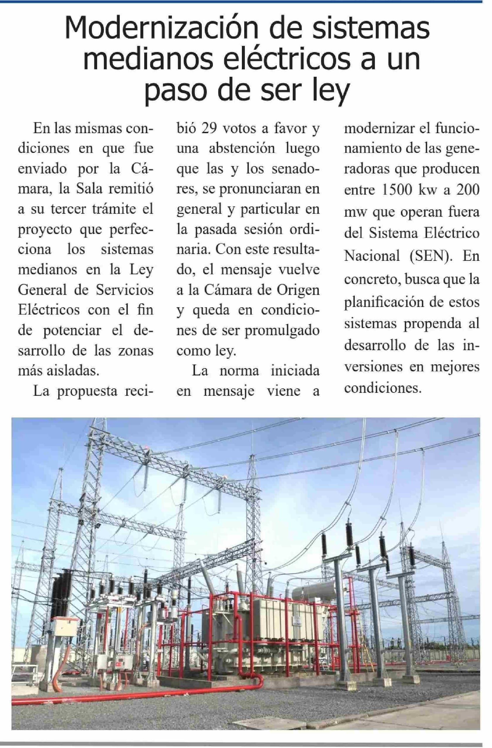 Modernización de sistemas medianos eléctricos a un paso de ser ley 16-01-2026 El Heraldo |