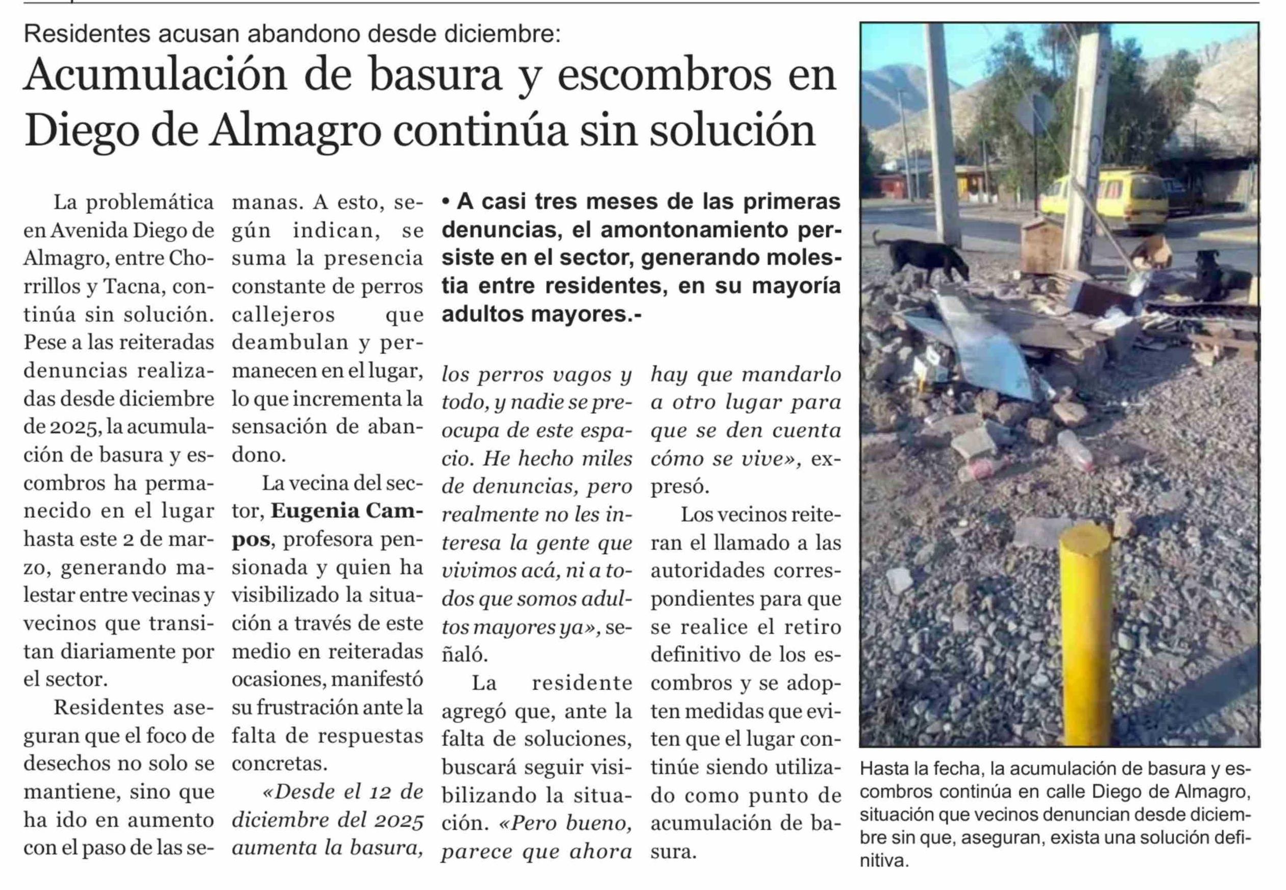 Acumulación de basura y escombros en Diego de Almagro continúa sin solución 03-03-2026 El Trabajo |